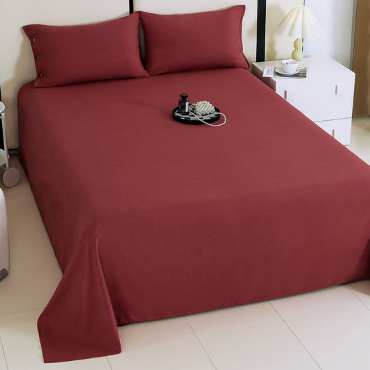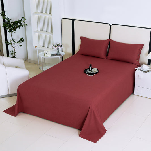 Story@Home 240 TC Red Buttonique Cotton Linen King Size Solid Flat Bedsheet with 2 Pillow Covers