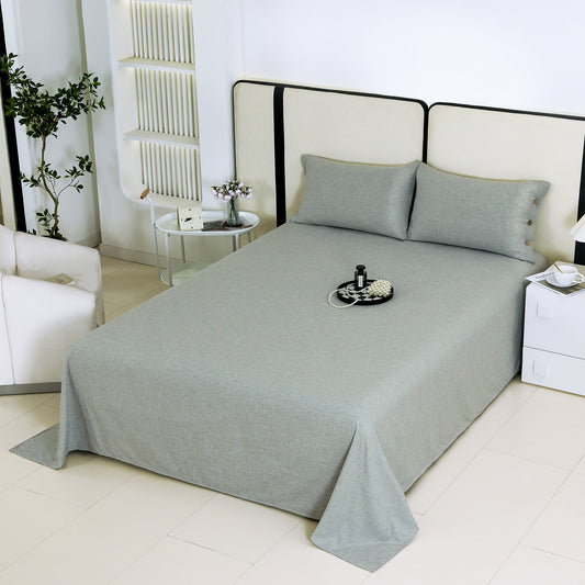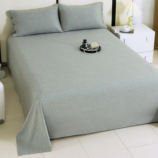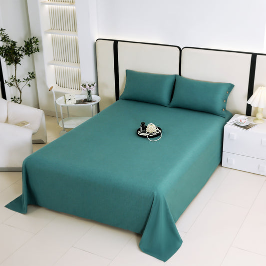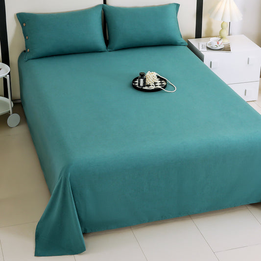 Story@Home 240 TC Green Buttonique Cotton Linen King Size Solid Flat Bedsheet with 2 Pillow Covers