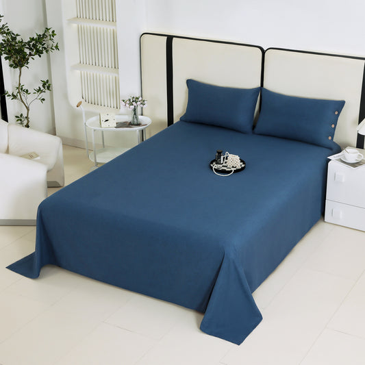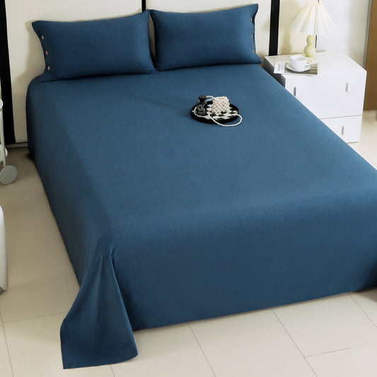 Story@Home 240 TC Mustard Buttonique Cotton Linen King Size Solid Flat Bedsheet with 2 Pillow Covers