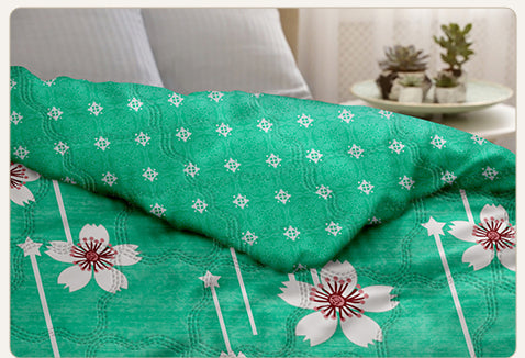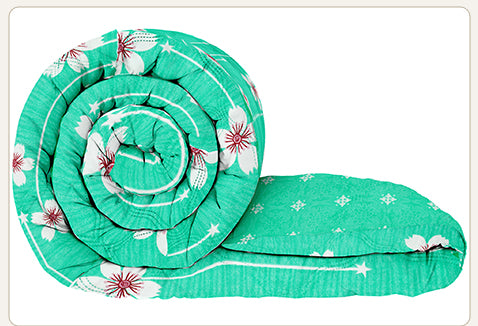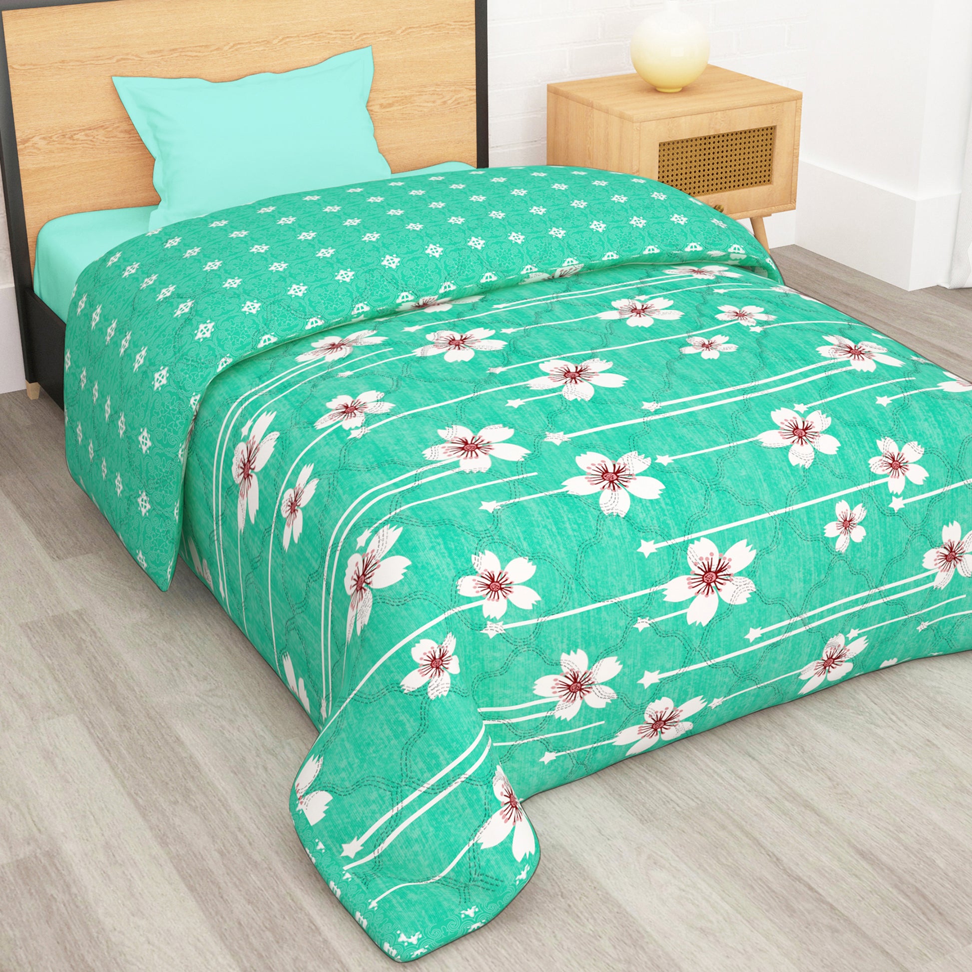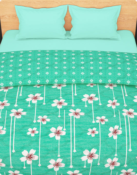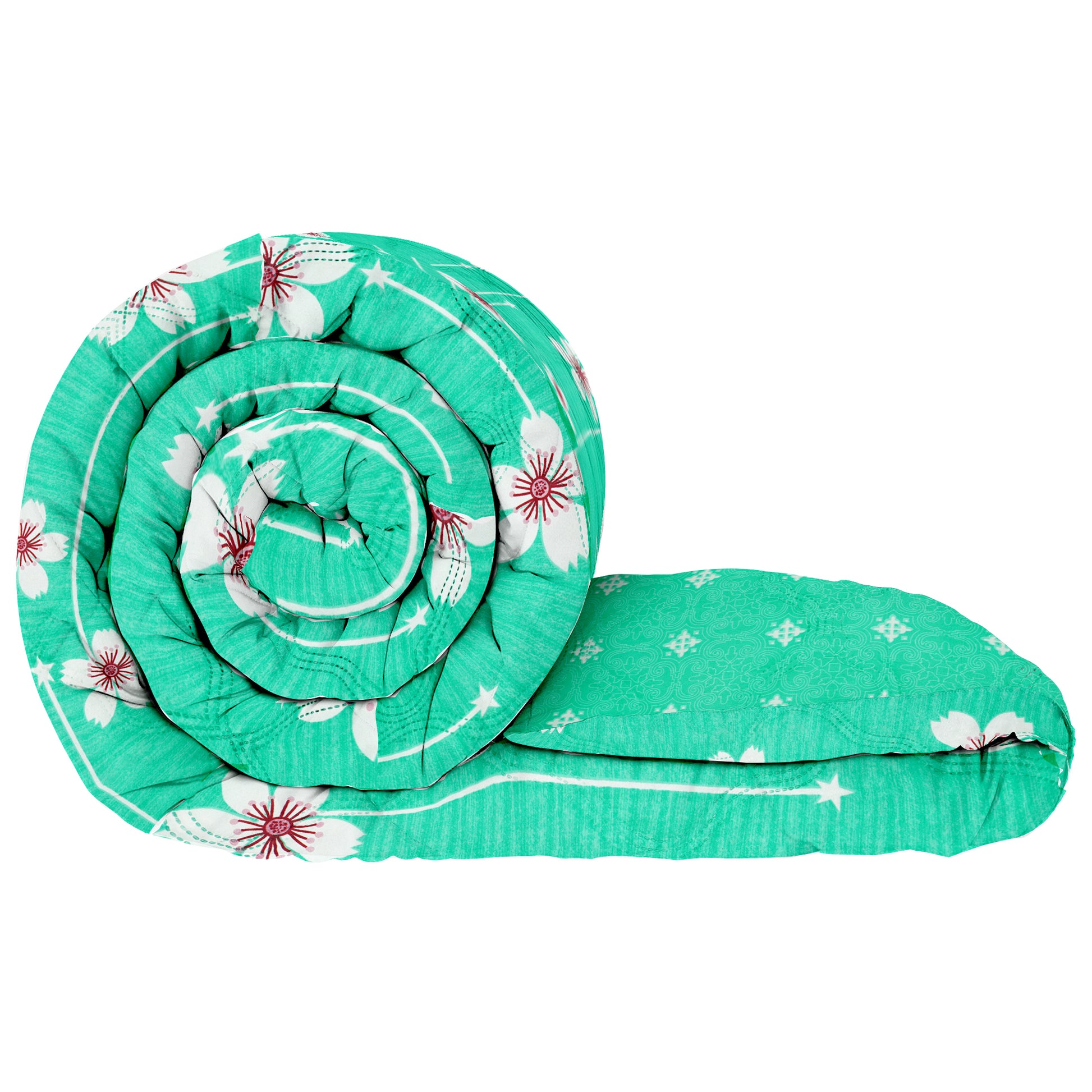 180 GSM Ocean Green Floral/Motif Microfiber Fusion Reversible Double Comforter