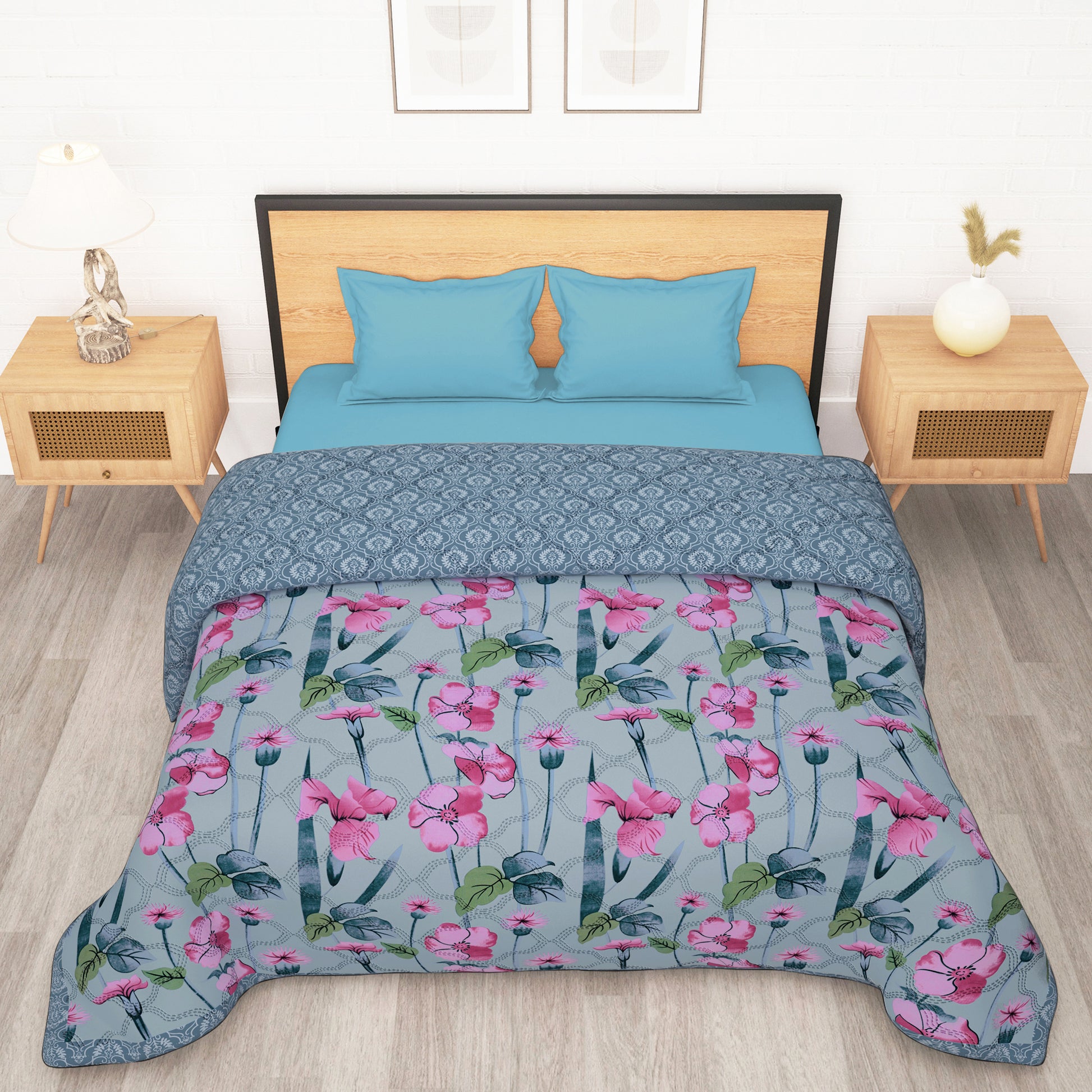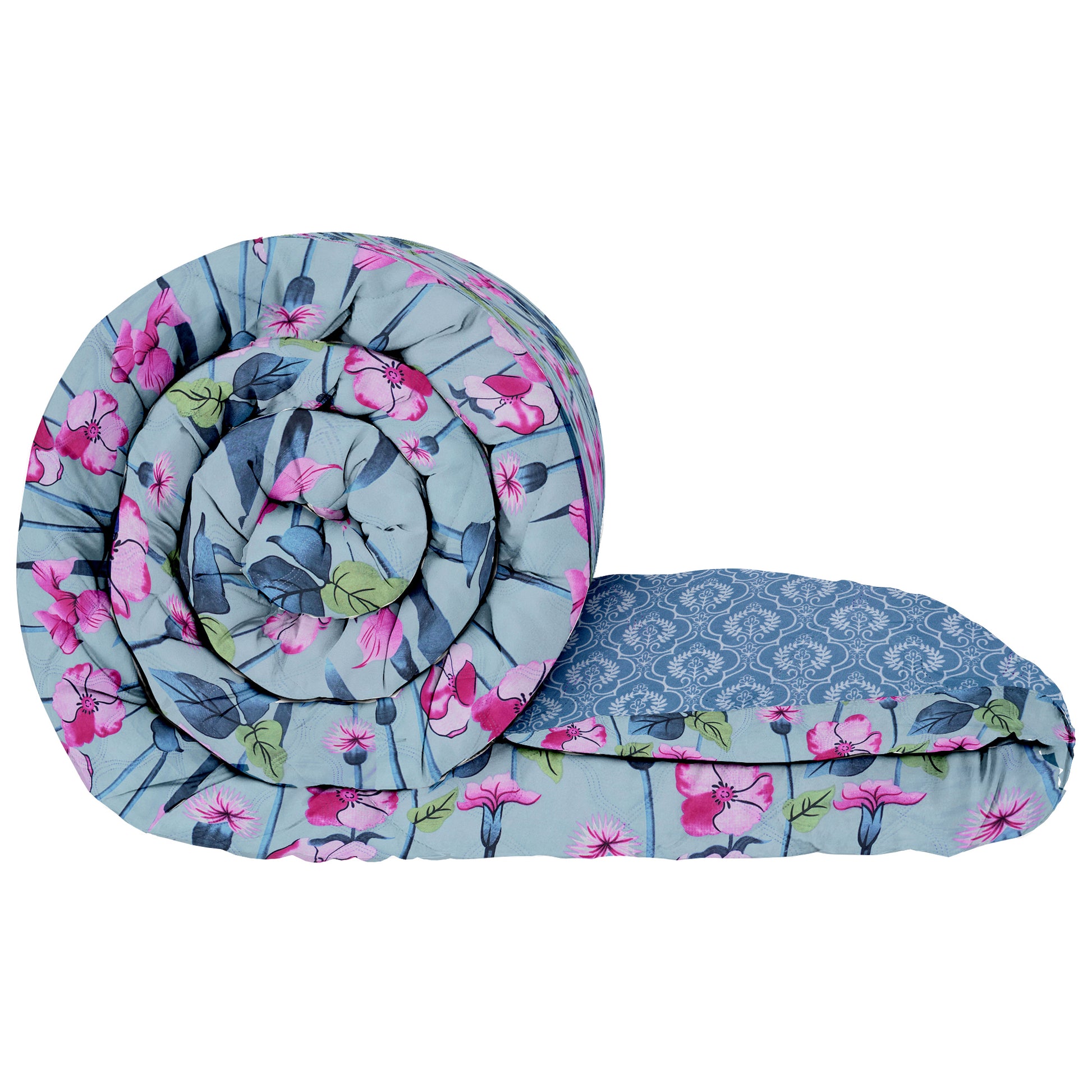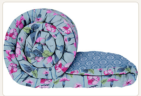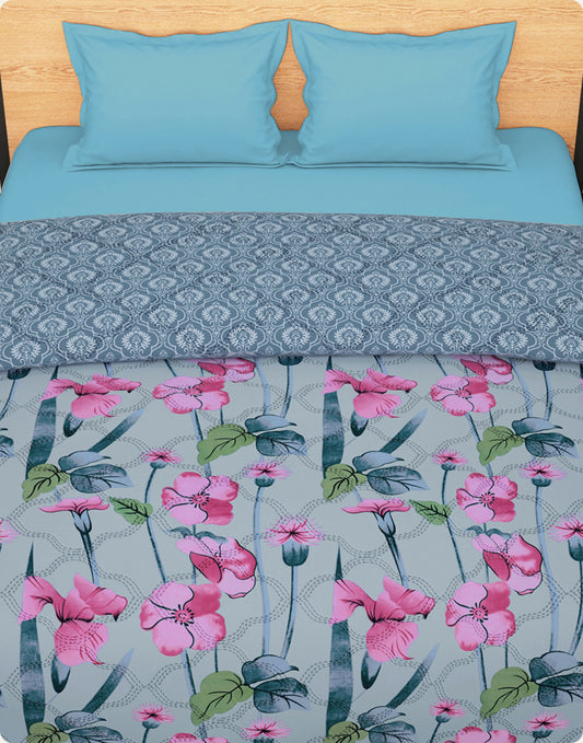 180 GSM Light Blue & Pink Floral Microfiber Fusion Reversible Double Comforter