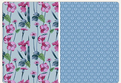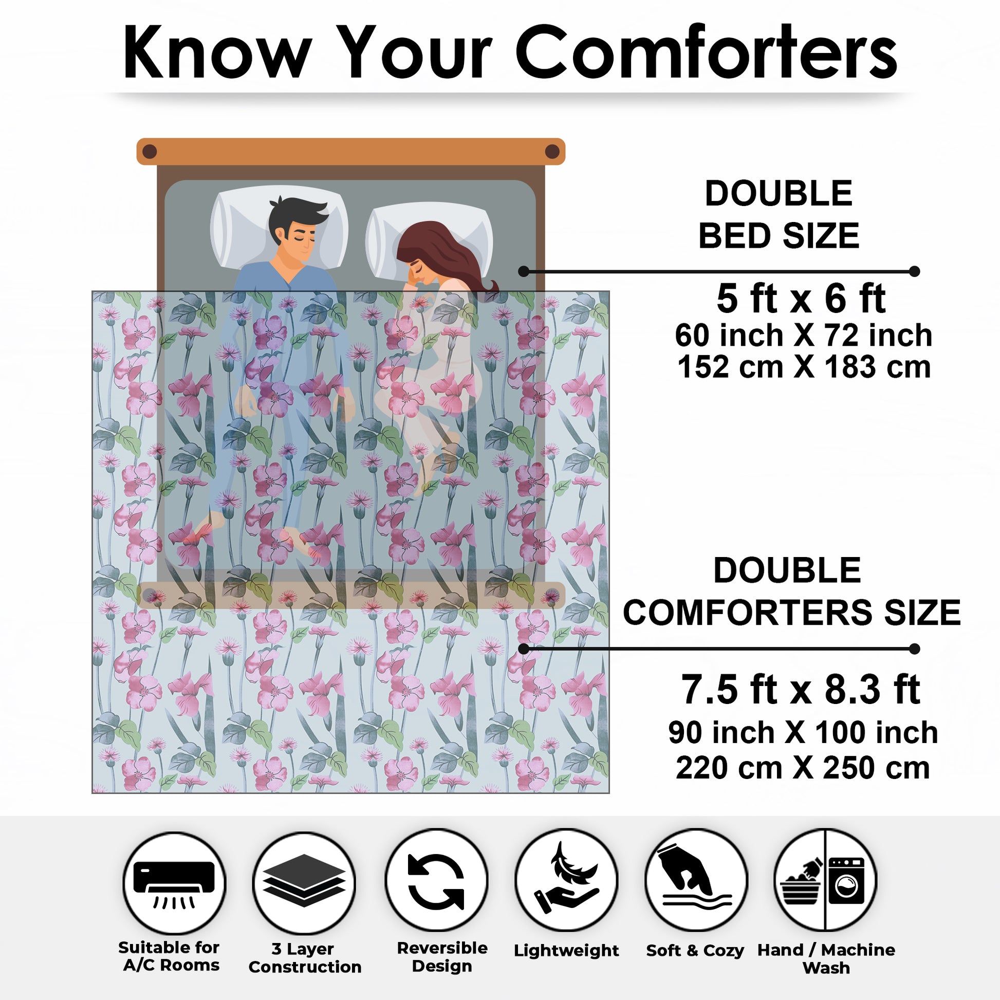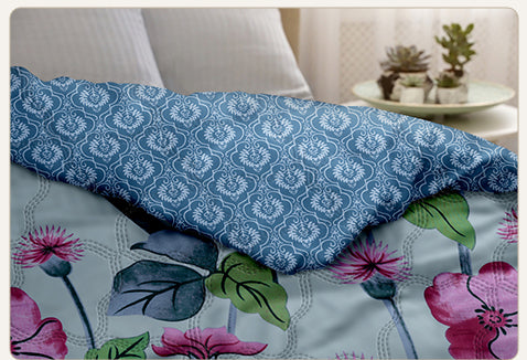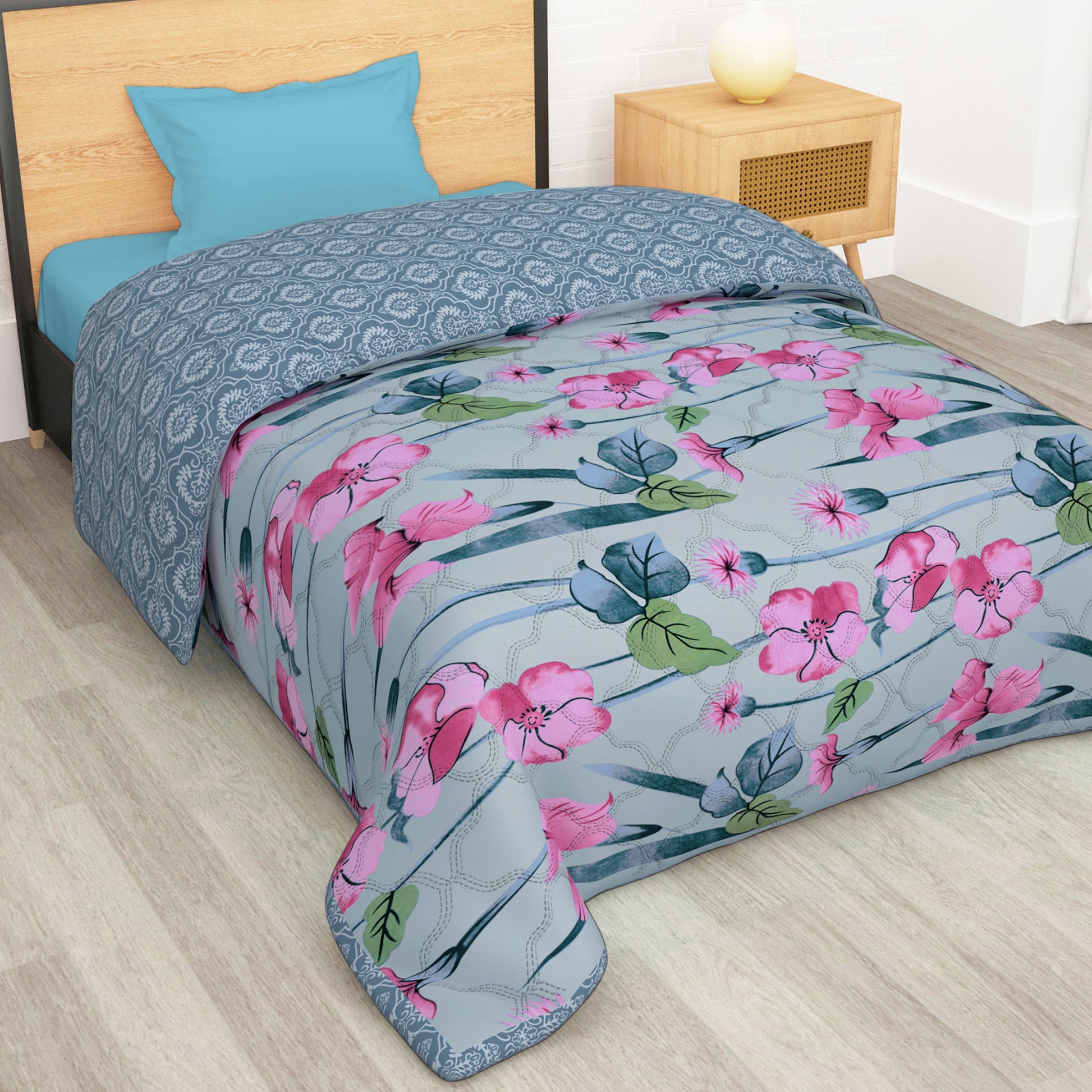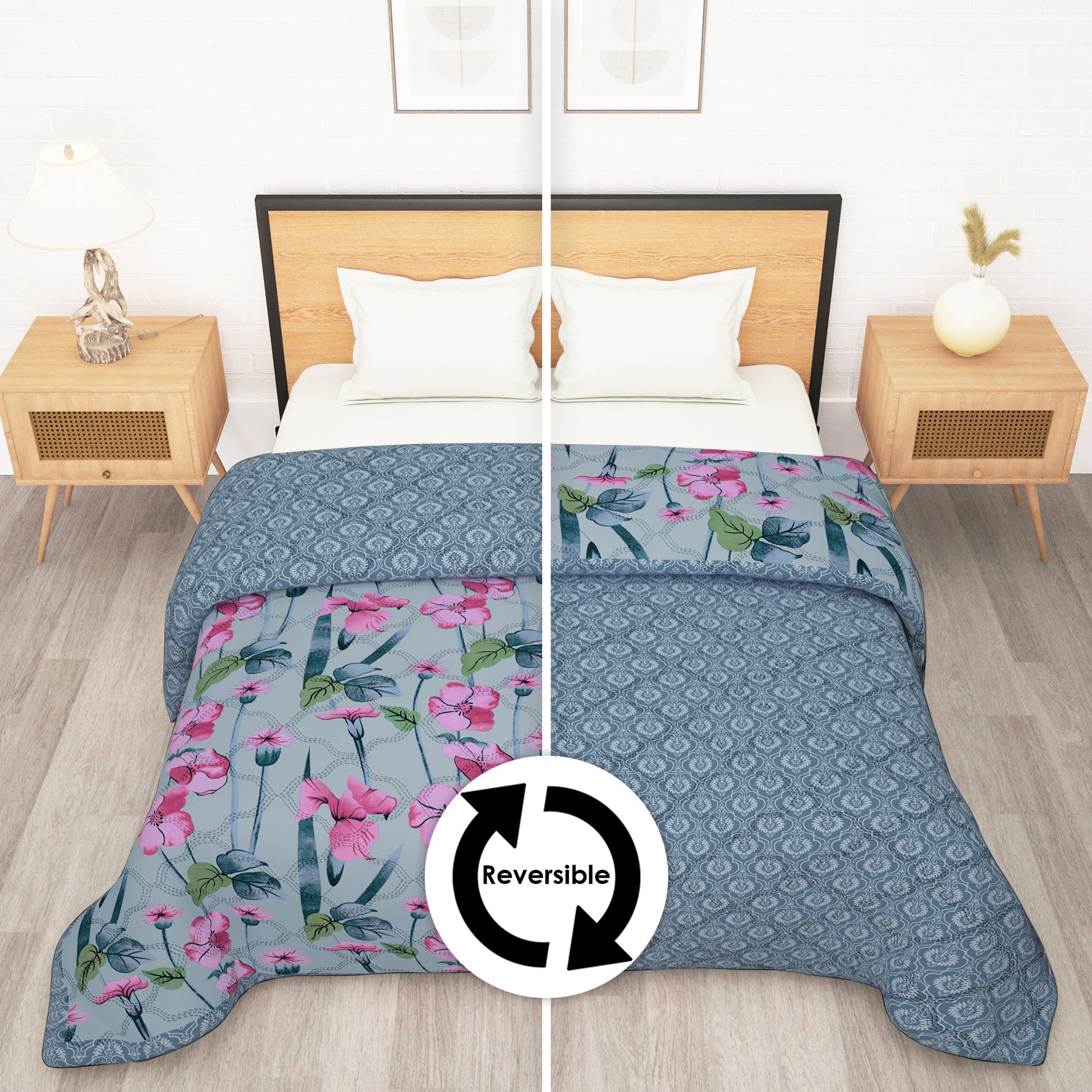 180 GSM Light Blue & Pink Floral Microfiber Fusion Reversible Double Comforter