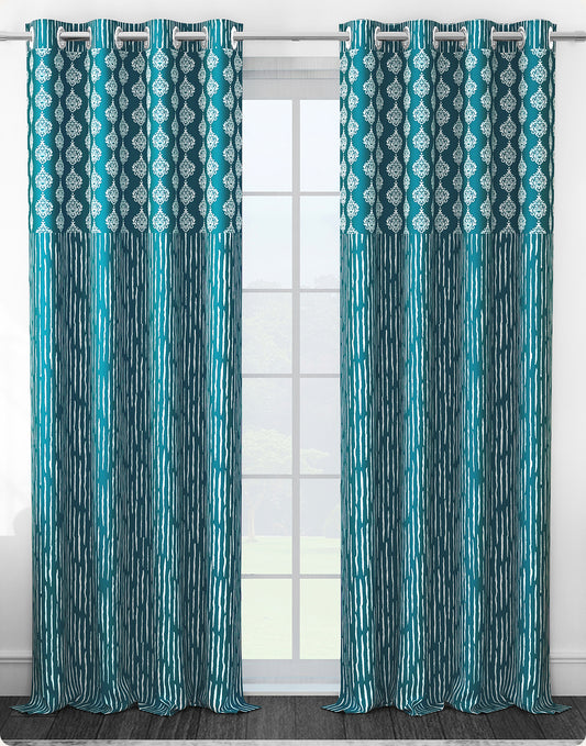 2 Pcs 250 GSM Blue & White Topaz Polyester Window / Door / Semi Long Door/ Long Door Curtains