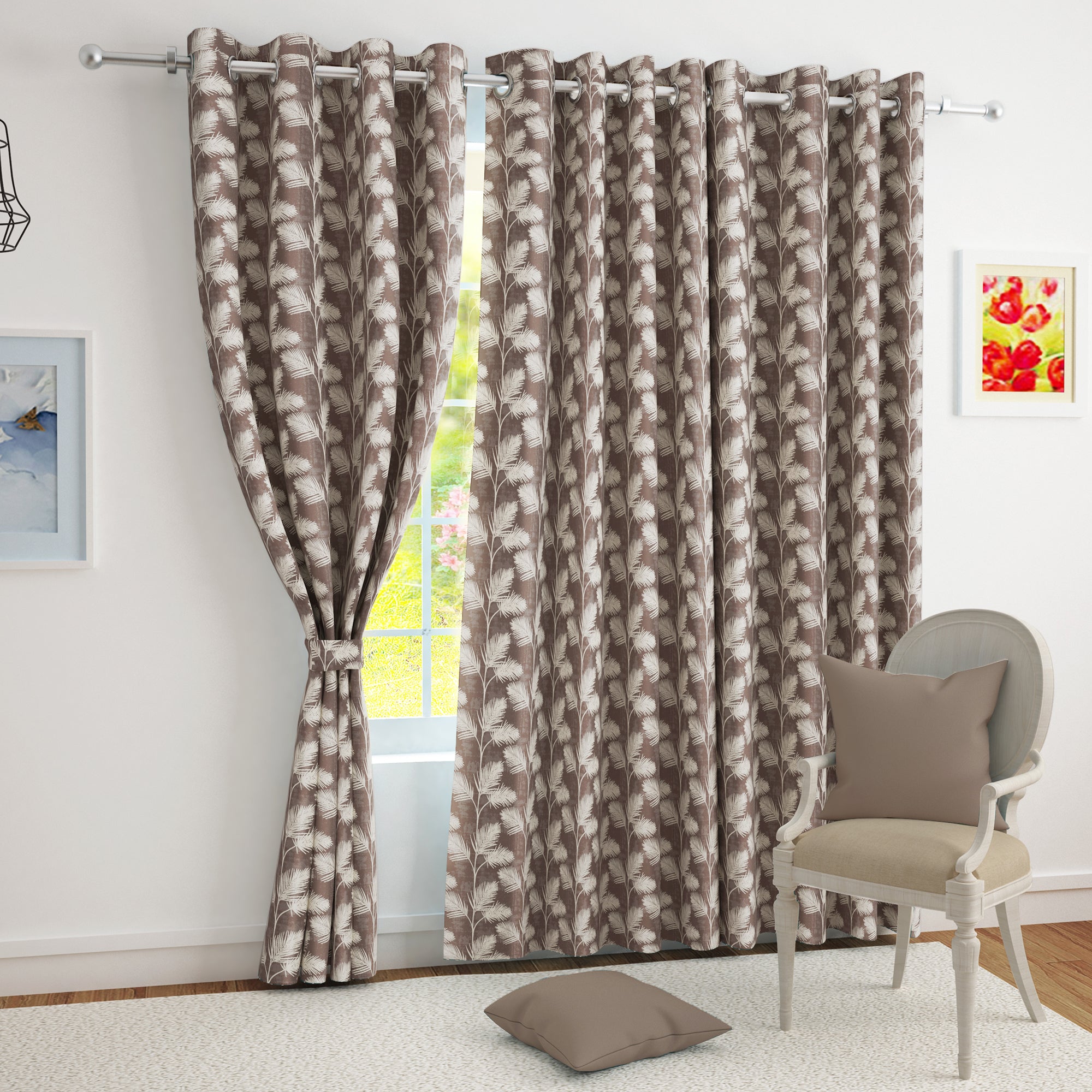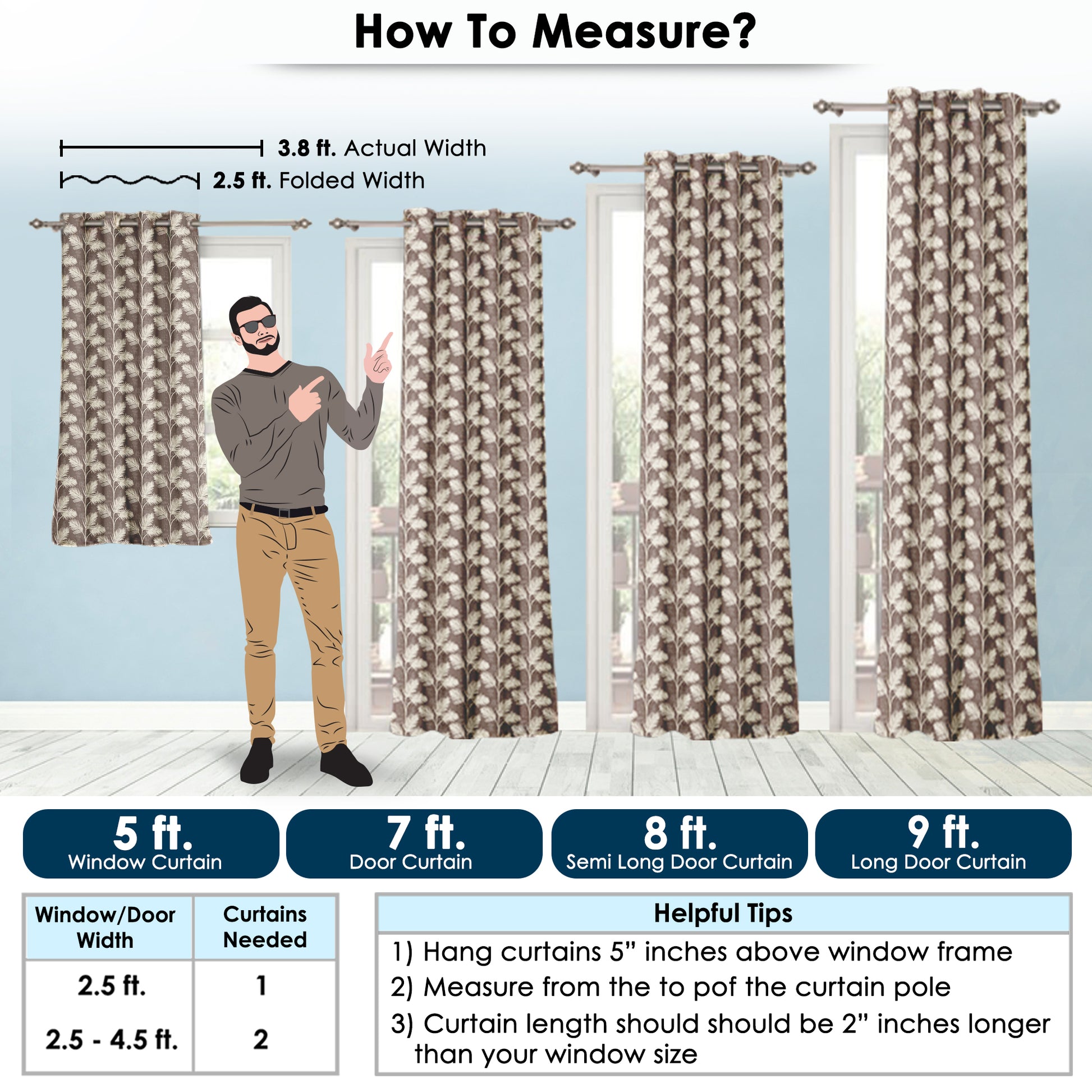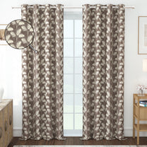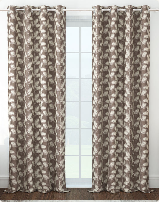 2 Pcs 400 GSM Brown Azurio Jacquard Window / Door / Semi Long Door/ Long Door Curtains