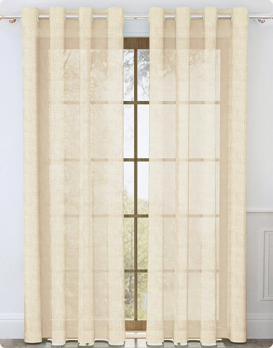 2 Pcs Beige Sheer Transparent Polyester Linen Sheer Window | Door | Long Door Curtains