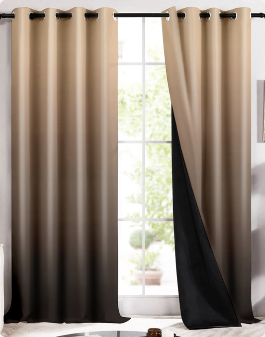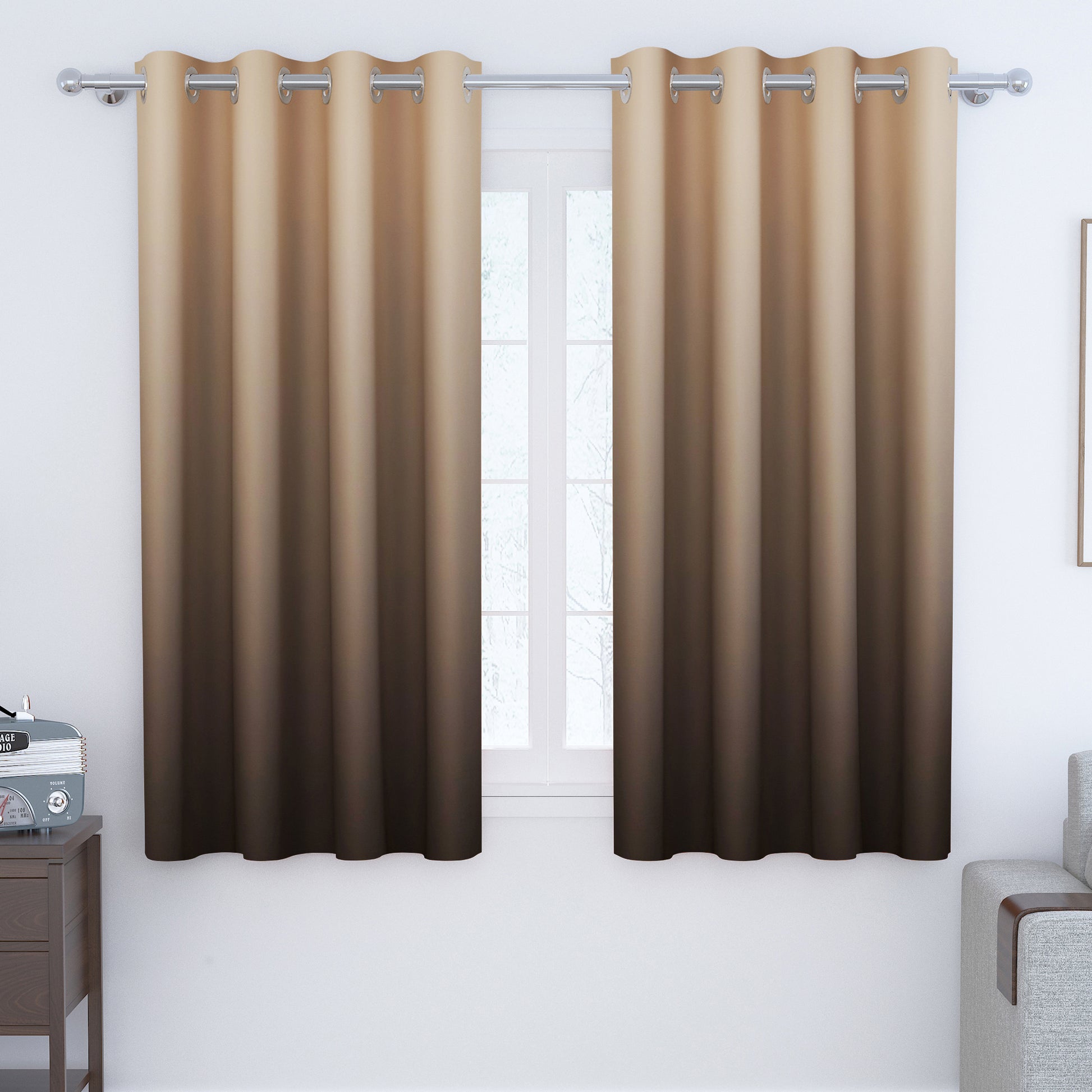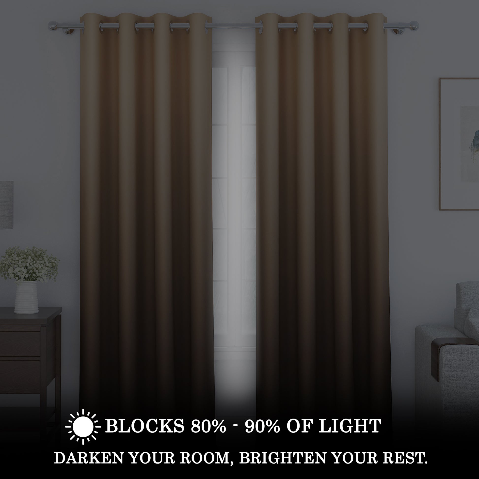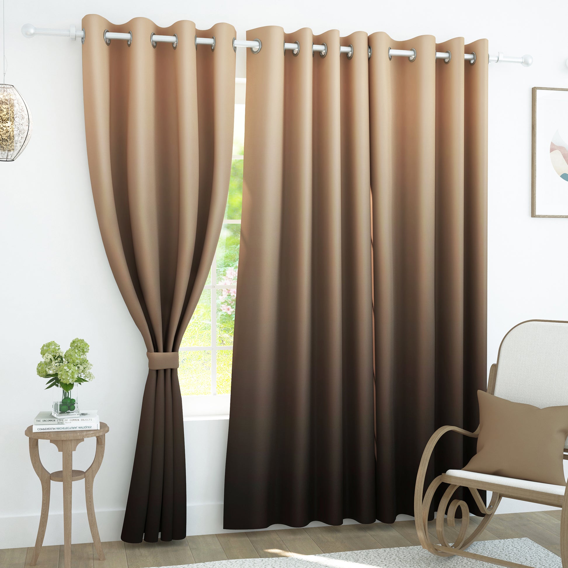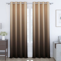 2 Pcs Blackout Foil Beige & Brown Gradient Window/Door/Semi Long Door/Long Door Curtains