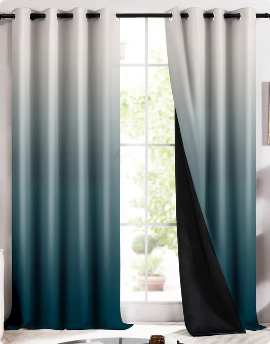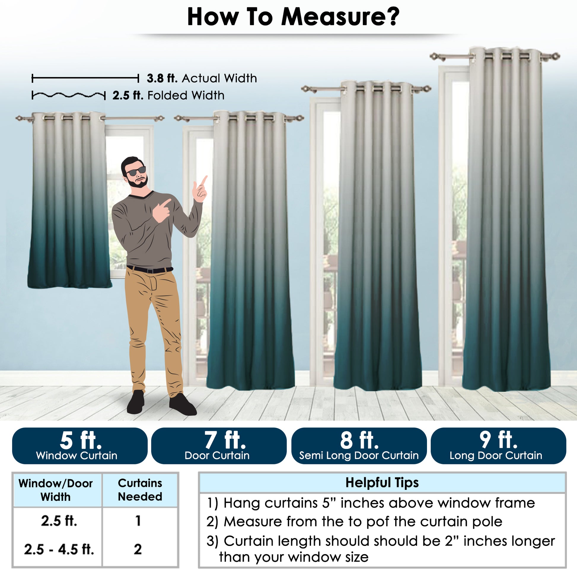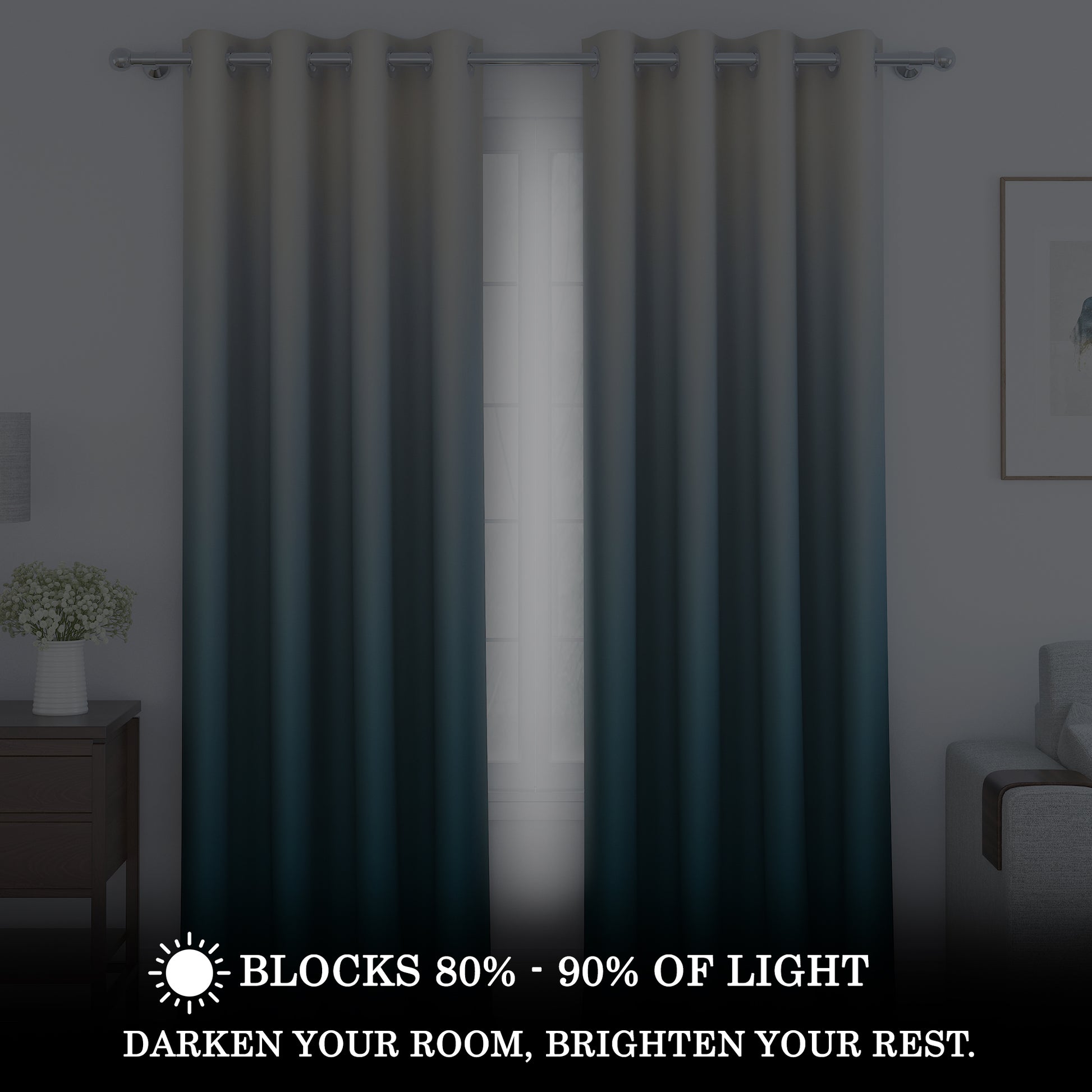 2 Pcs Blackout Foil Cyan Blue & Light Grey Gradient Window/Door/Semi Long Door/Long Door Curtains