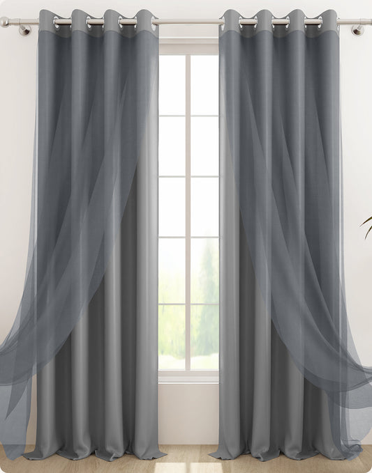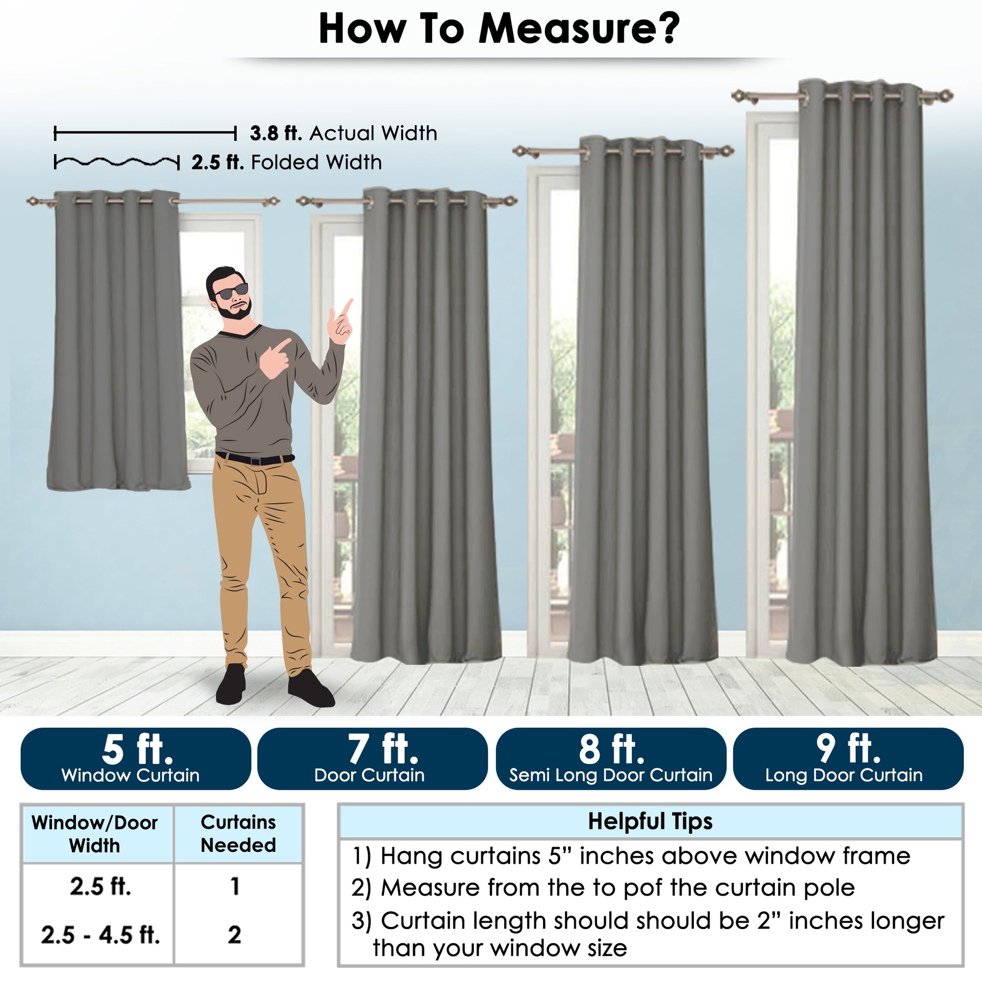 2 Pcs Blackout Serene Duo Grey Solid Window/Door/Semi Long Door/Long Door Curtains