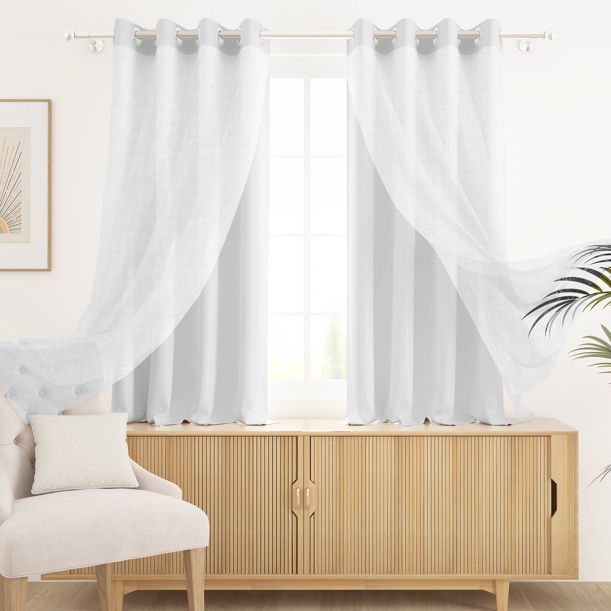 2 Pcs Blackout Serene Duo White Solid Window/Door/Semi Long Door/Long Door Curtains