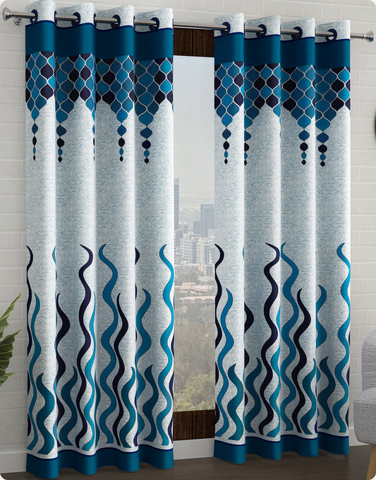 2 Pcs Sky Blue & Blue Nature Abstract Print Polyester Window,Door & Long Door Curtains