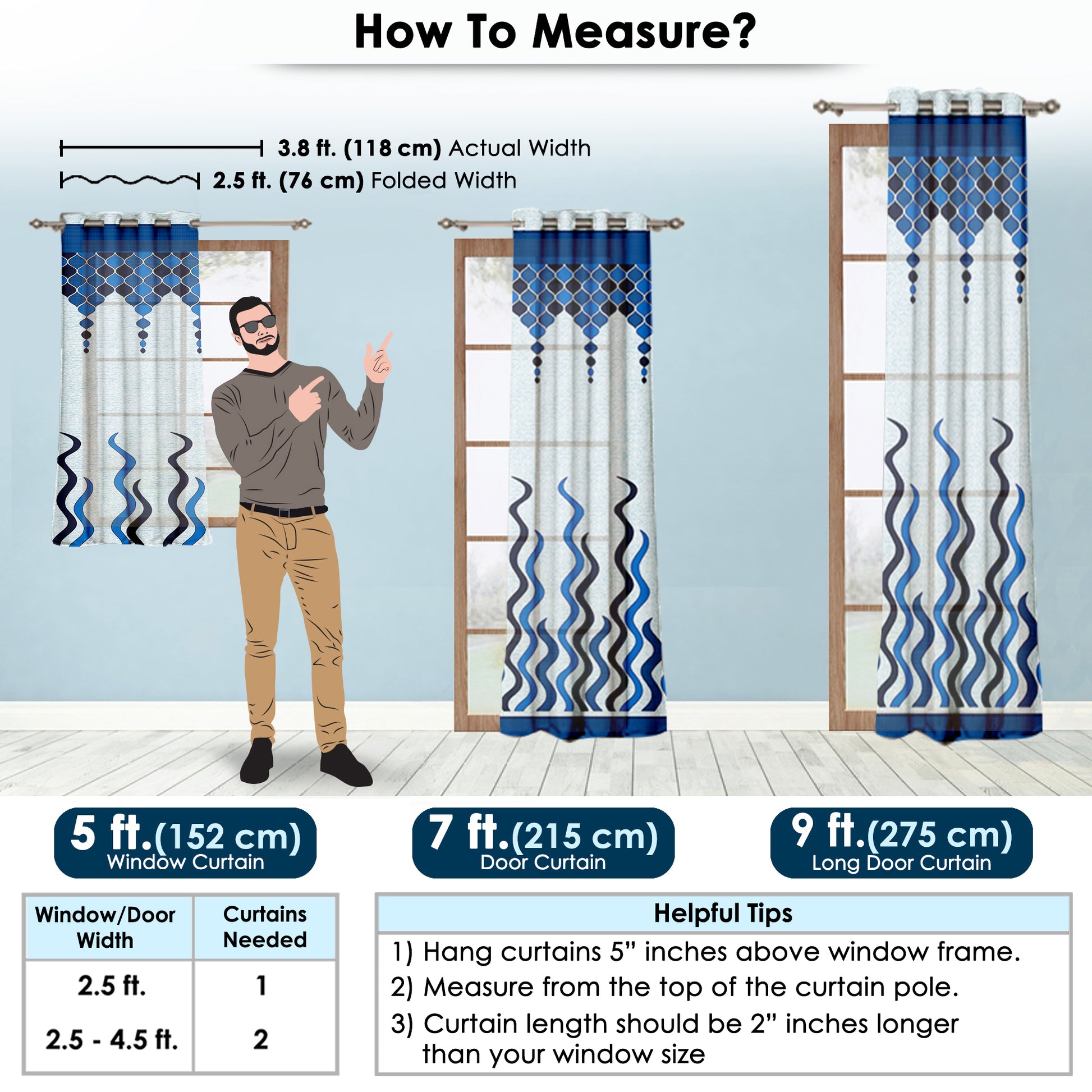 2 Pcs Sky Blue & Blue Nature Abstract Print Polyester Window,Door & Long Door Curtains