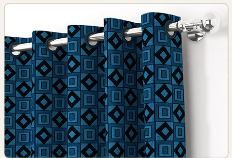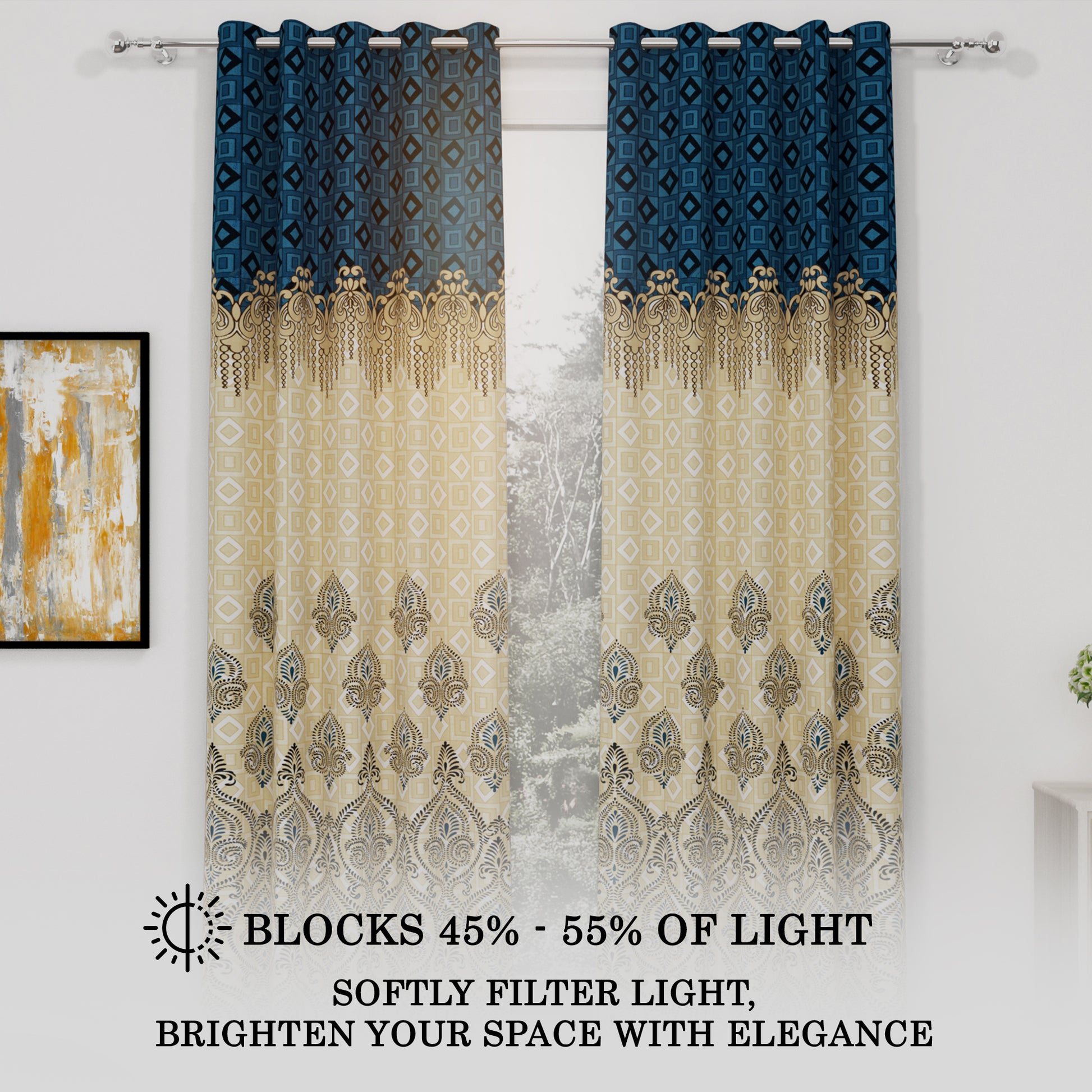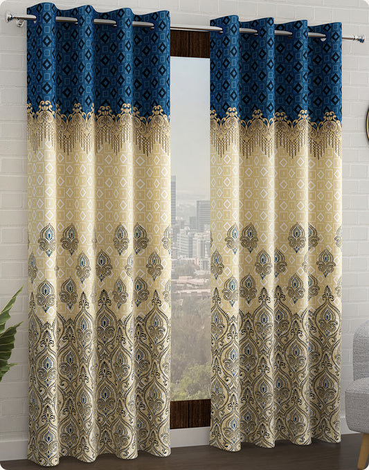 2 Pcs Blue & Ivory Nature Ethnic Print Polyester Window,Door & Long Door Curtains