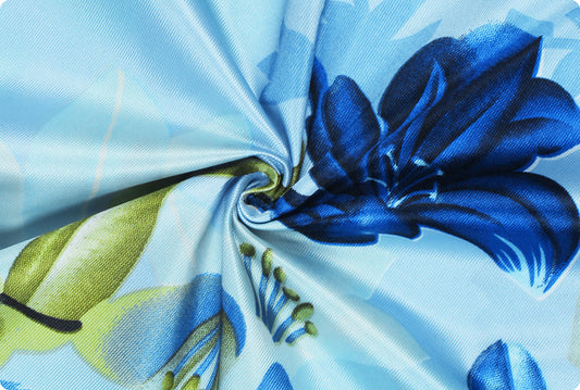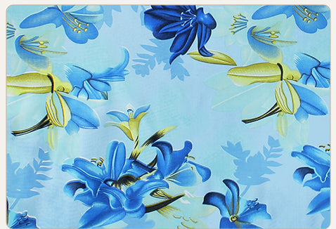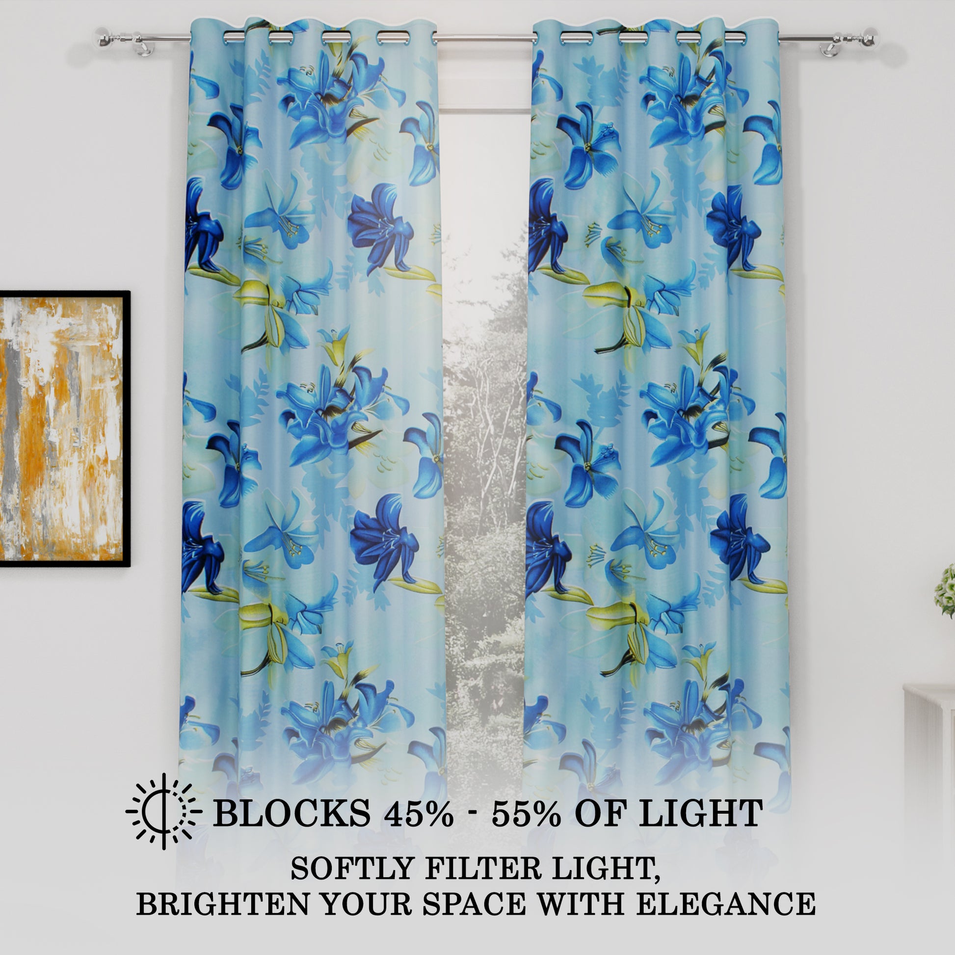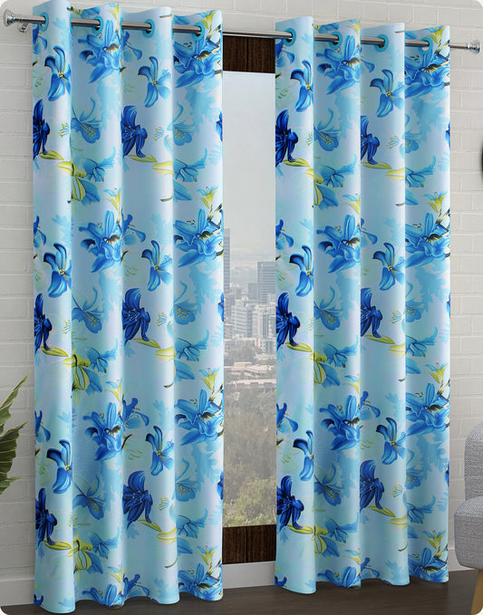 2 Pcs Blue Nature Floral Print Polyester Window and Door Curtains