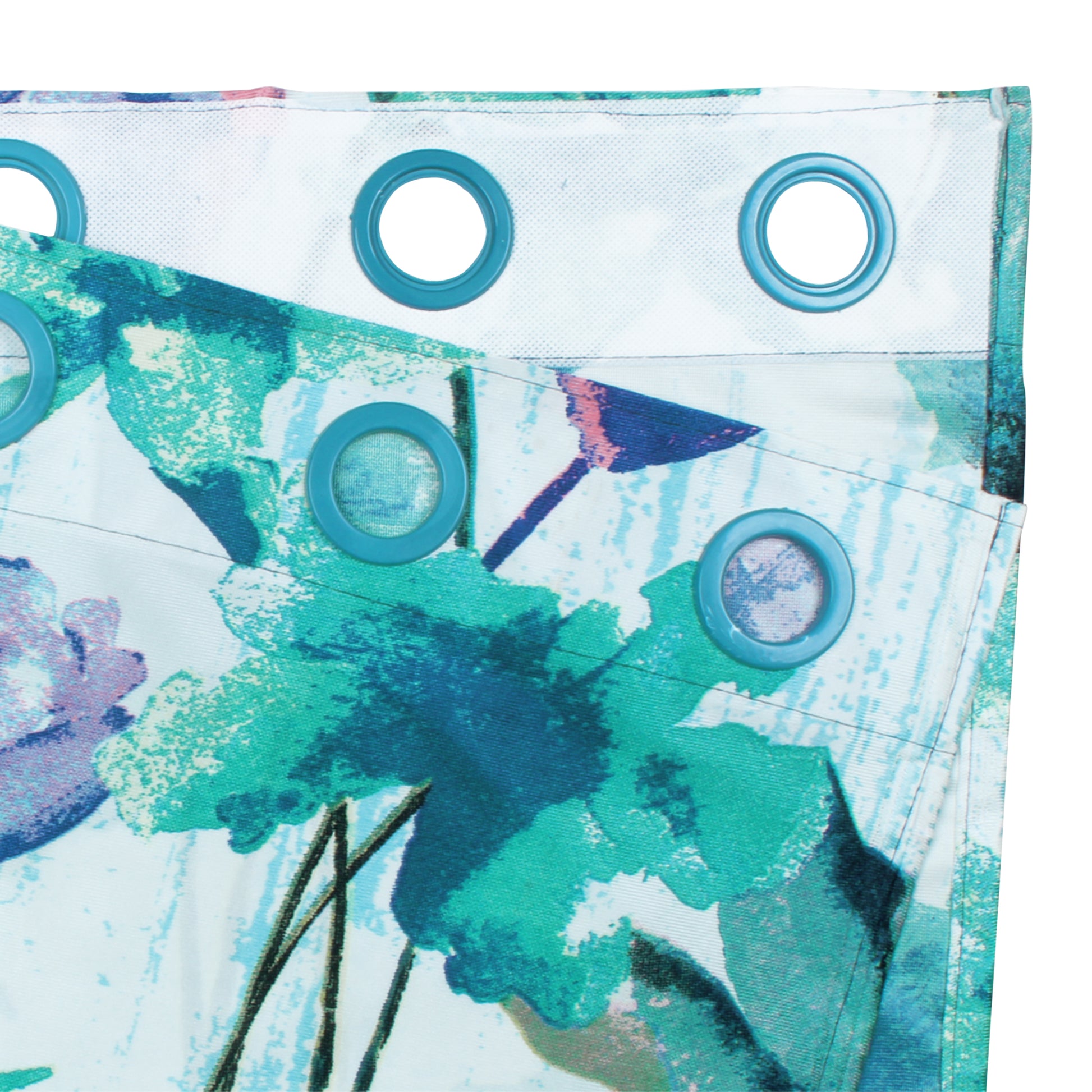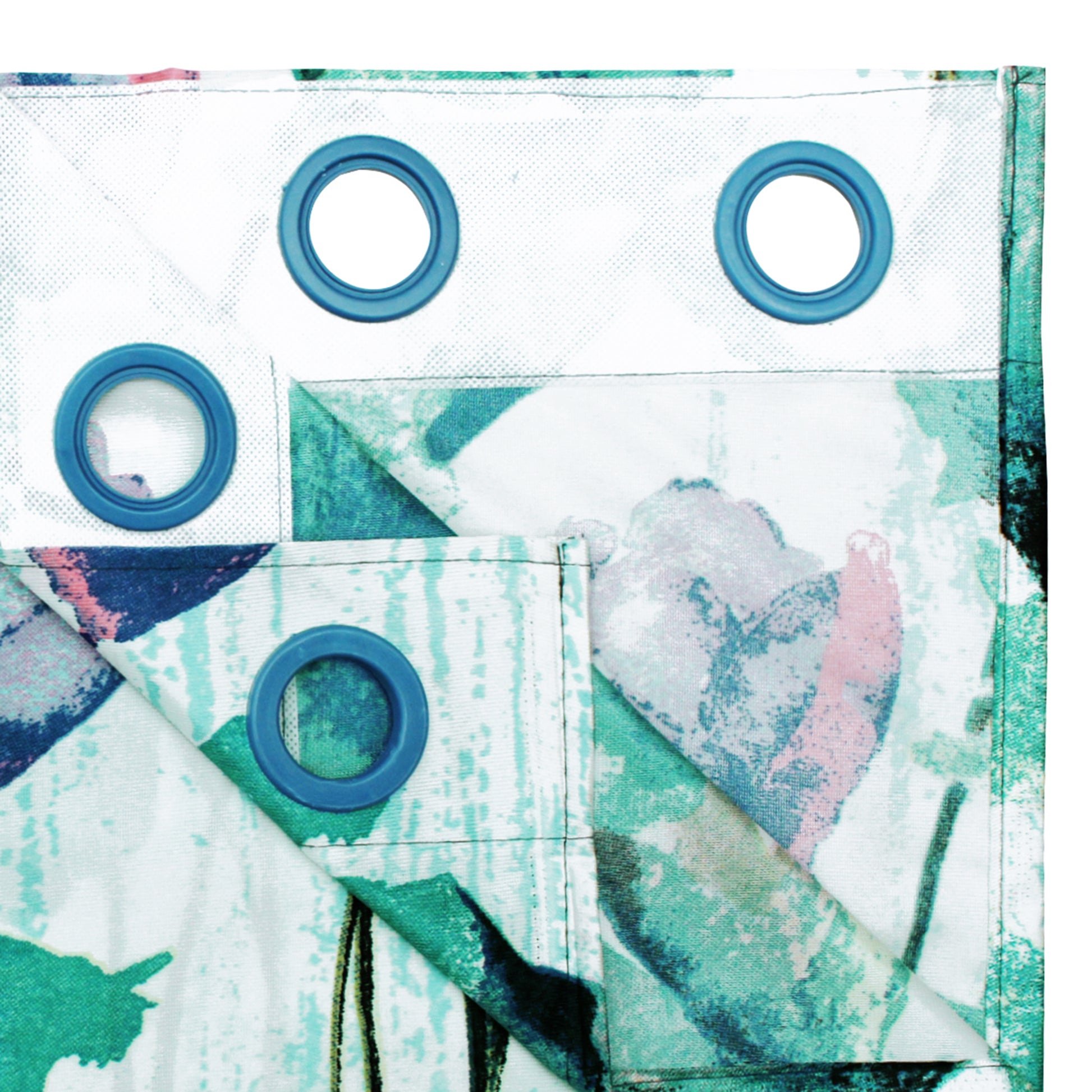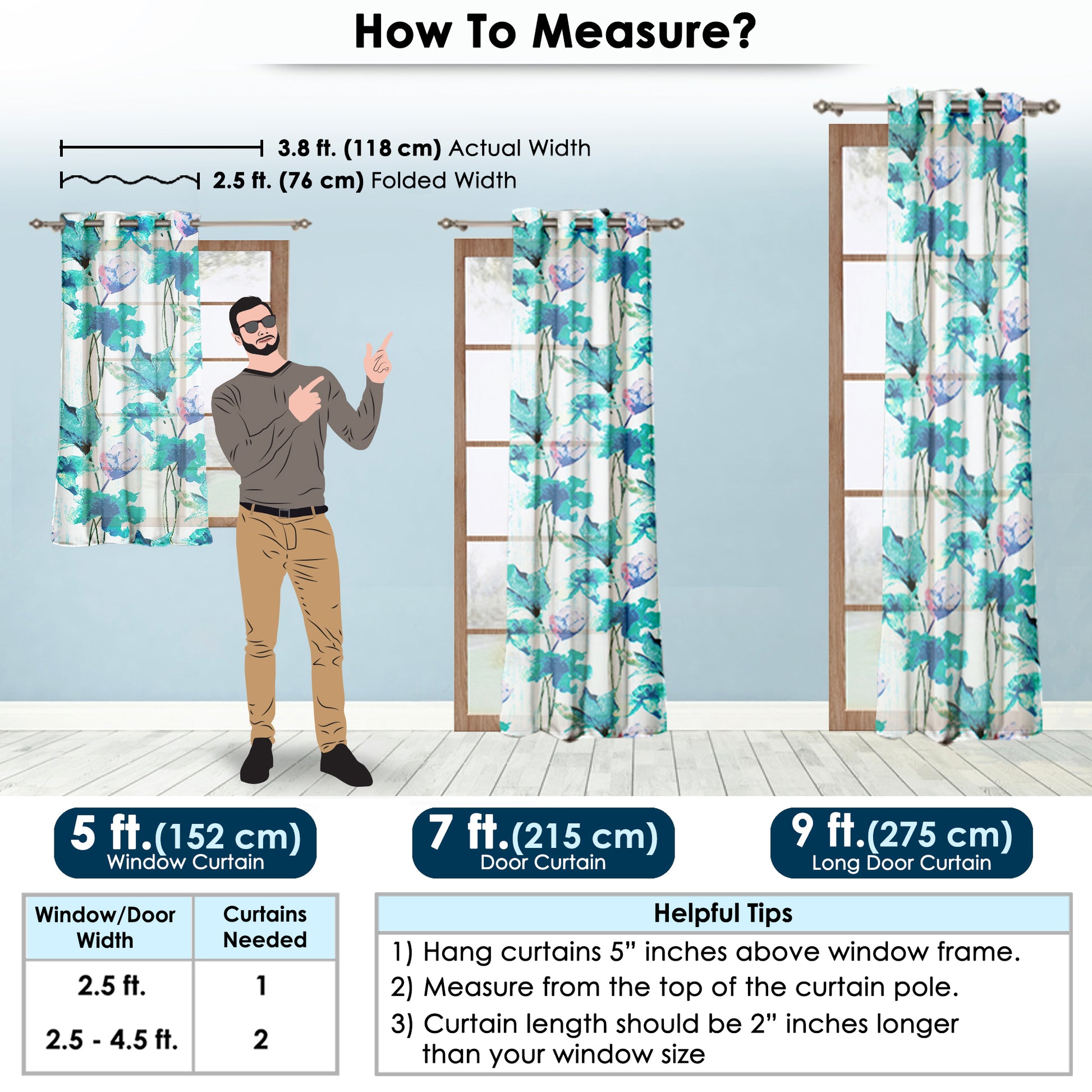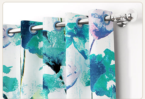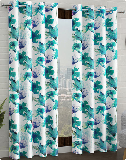 2 Pcs Blue Nature Floral Print Polyester Window / Door Curtains