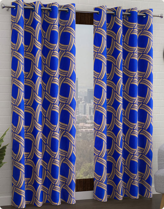 2 Pcs Blue Nature Abstract Print Polyester Window / Door Curtains