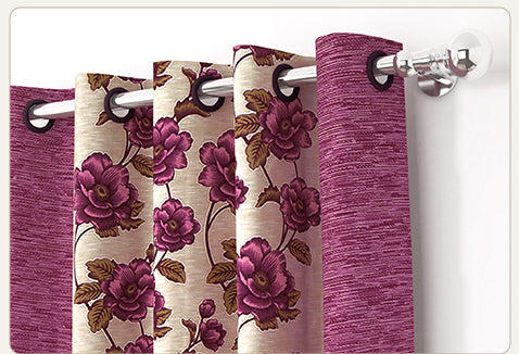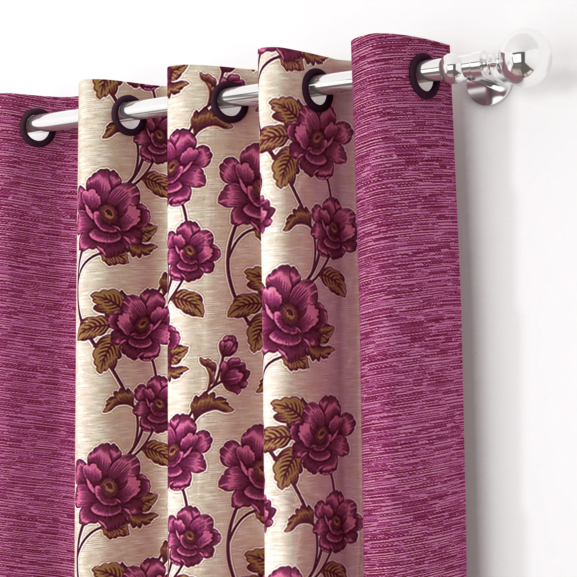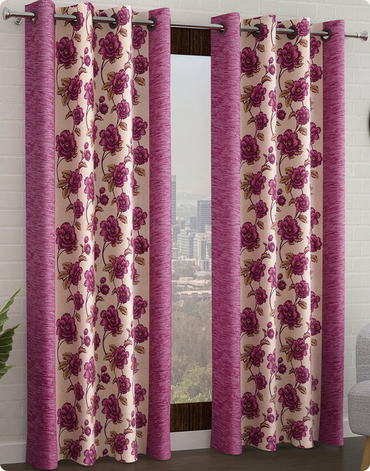 2 Pcs Pink Nature Floral Print Polyester Window and Door Curtains