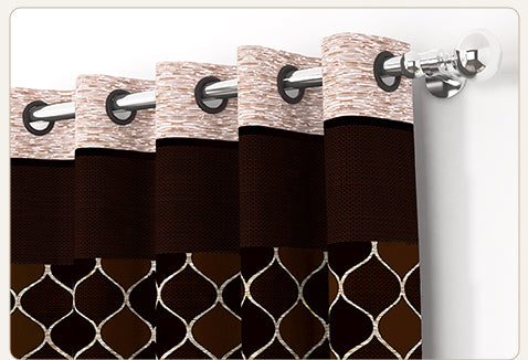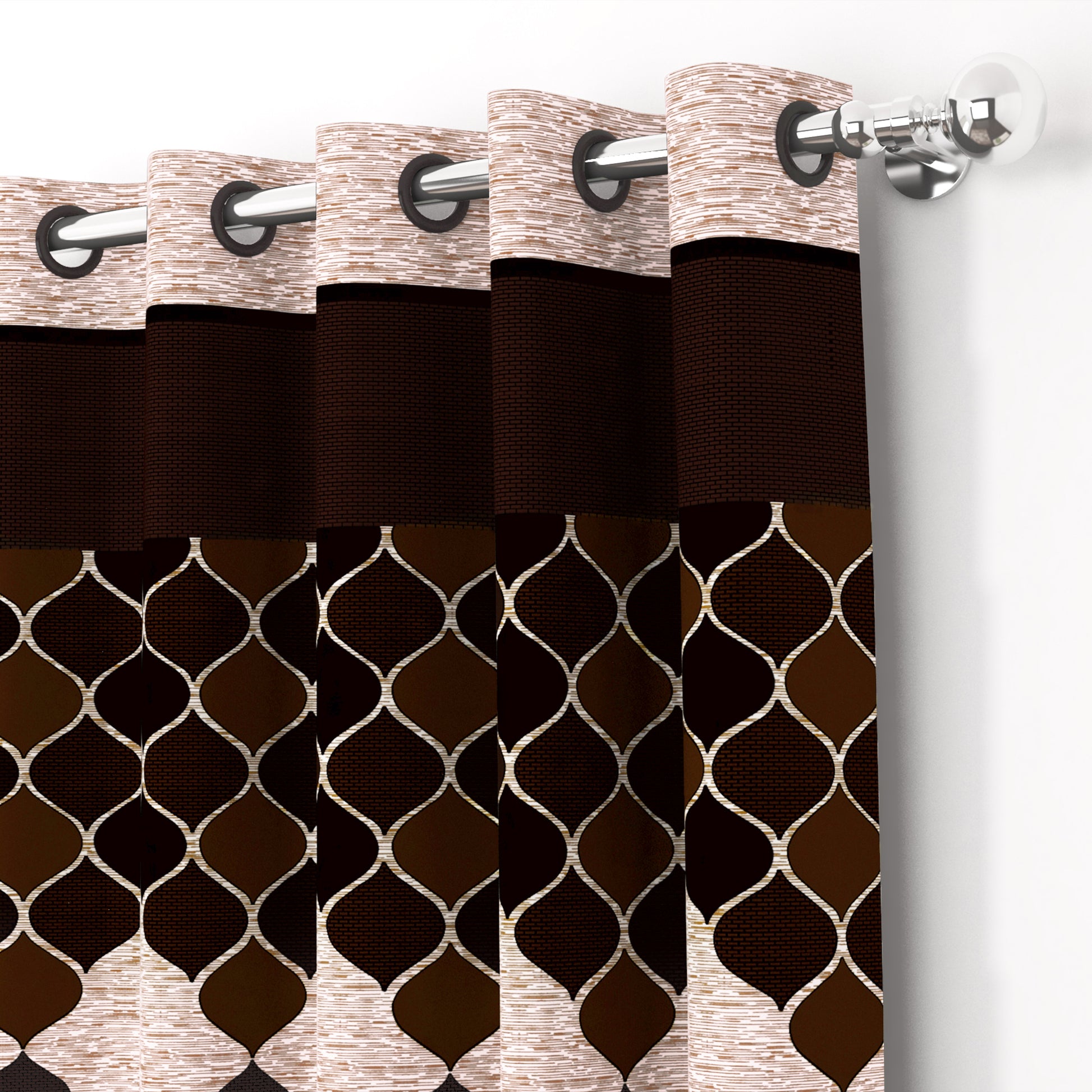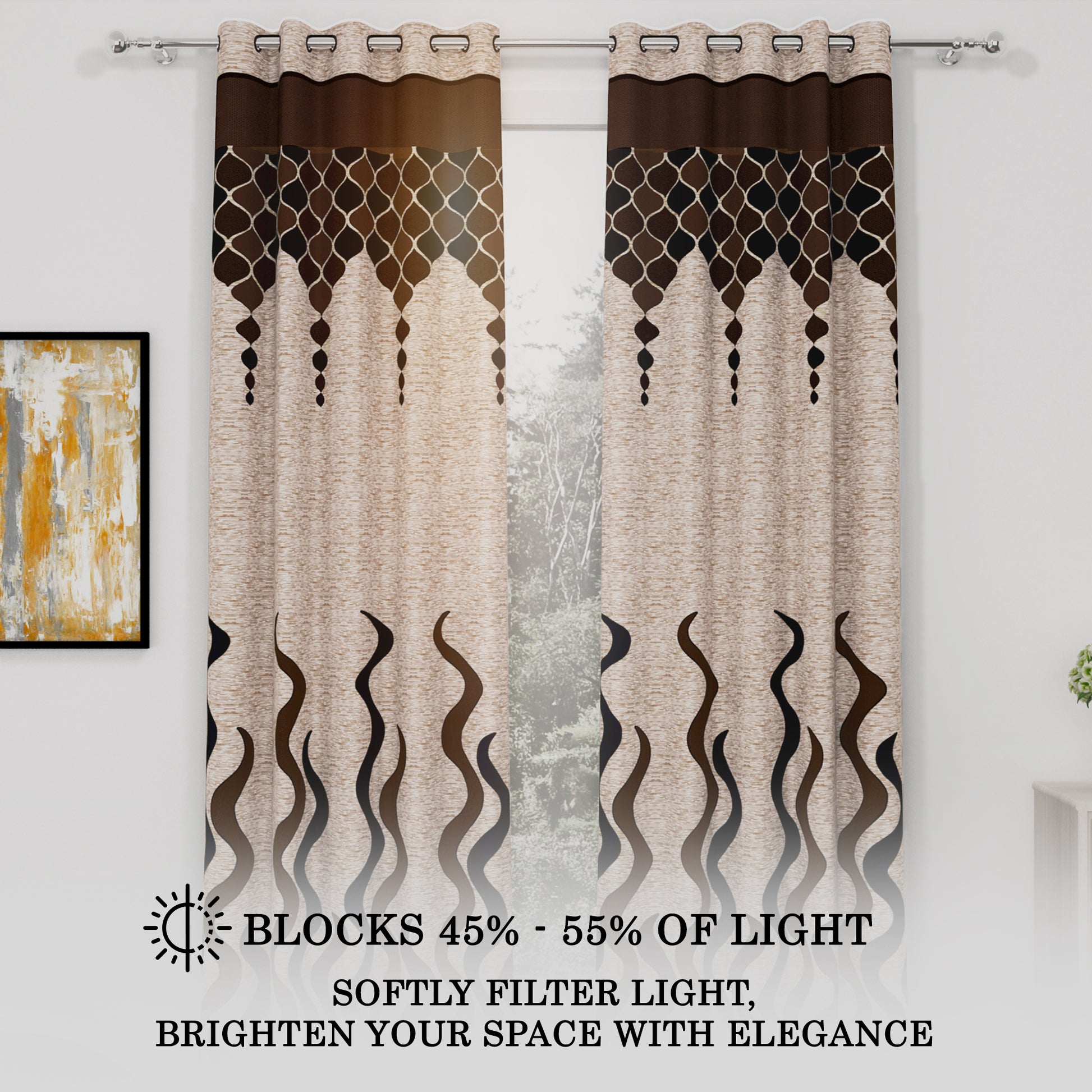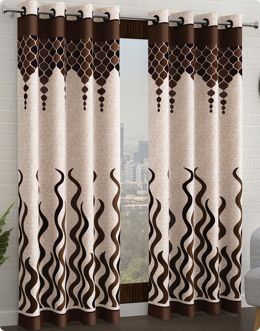 2 Pcs Brown & Beige Nature Abstract Print Polyester Window,Door & Long Door Curtains