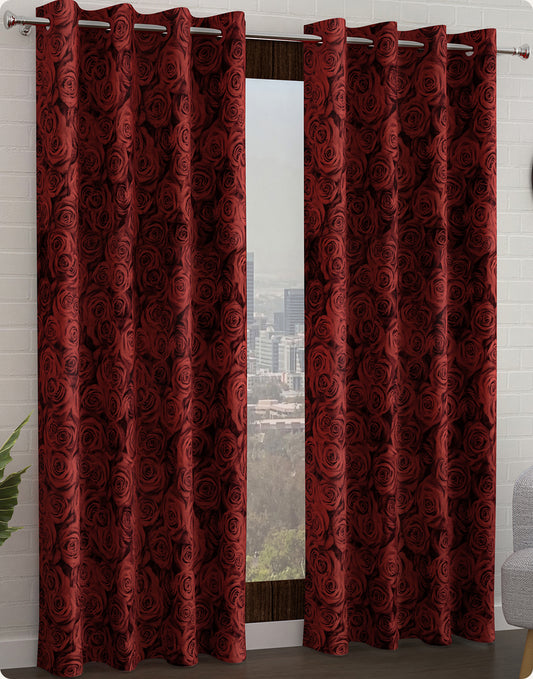 2 Pcs Nature Floral Red Polyester Window and Door Curtains