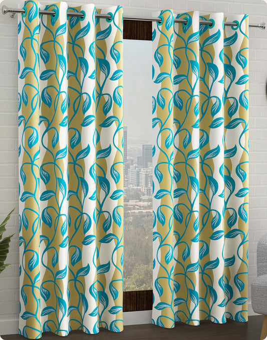 2 Pcs Nature Floral Turquoise Polyester Window and Door Curtains