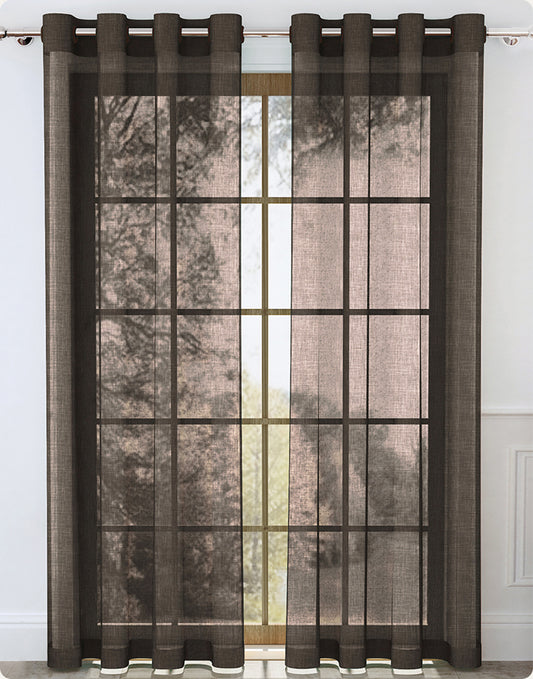 2 Pcs Brown Sheer Transparent Polyester Linen Sheer Window | Door | Long Door Curtains