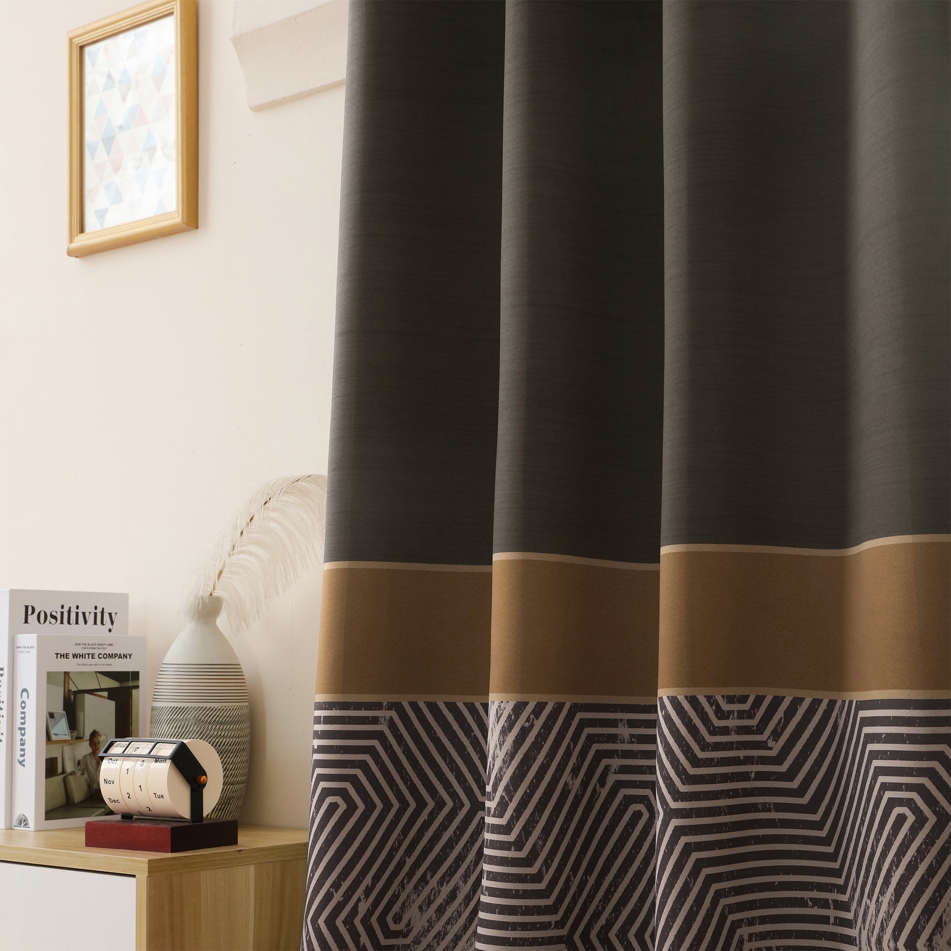 2 Pcs Dark Brown Abstract Digital Faux Silk Medium room Darkening Window | Door | Long Door Curtains