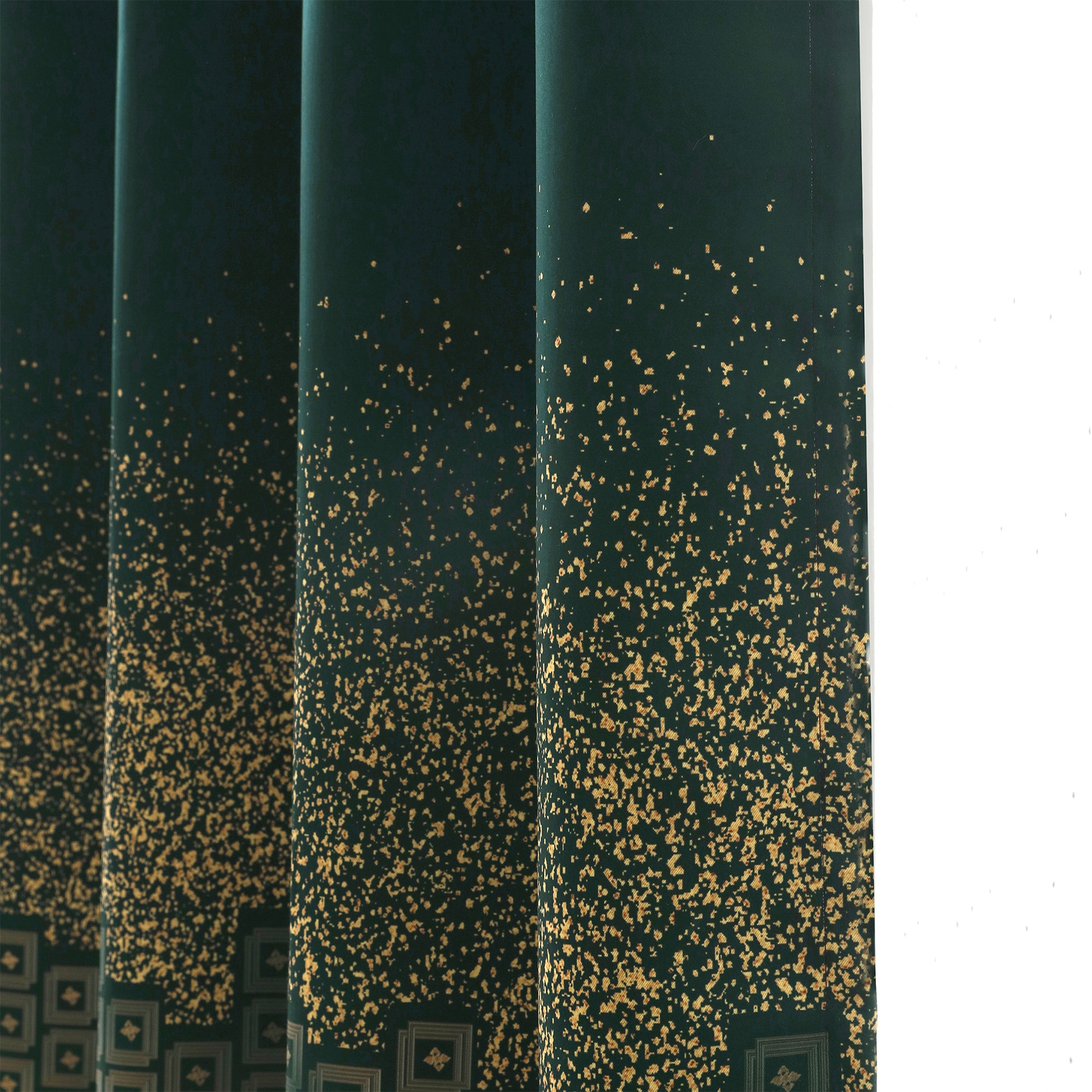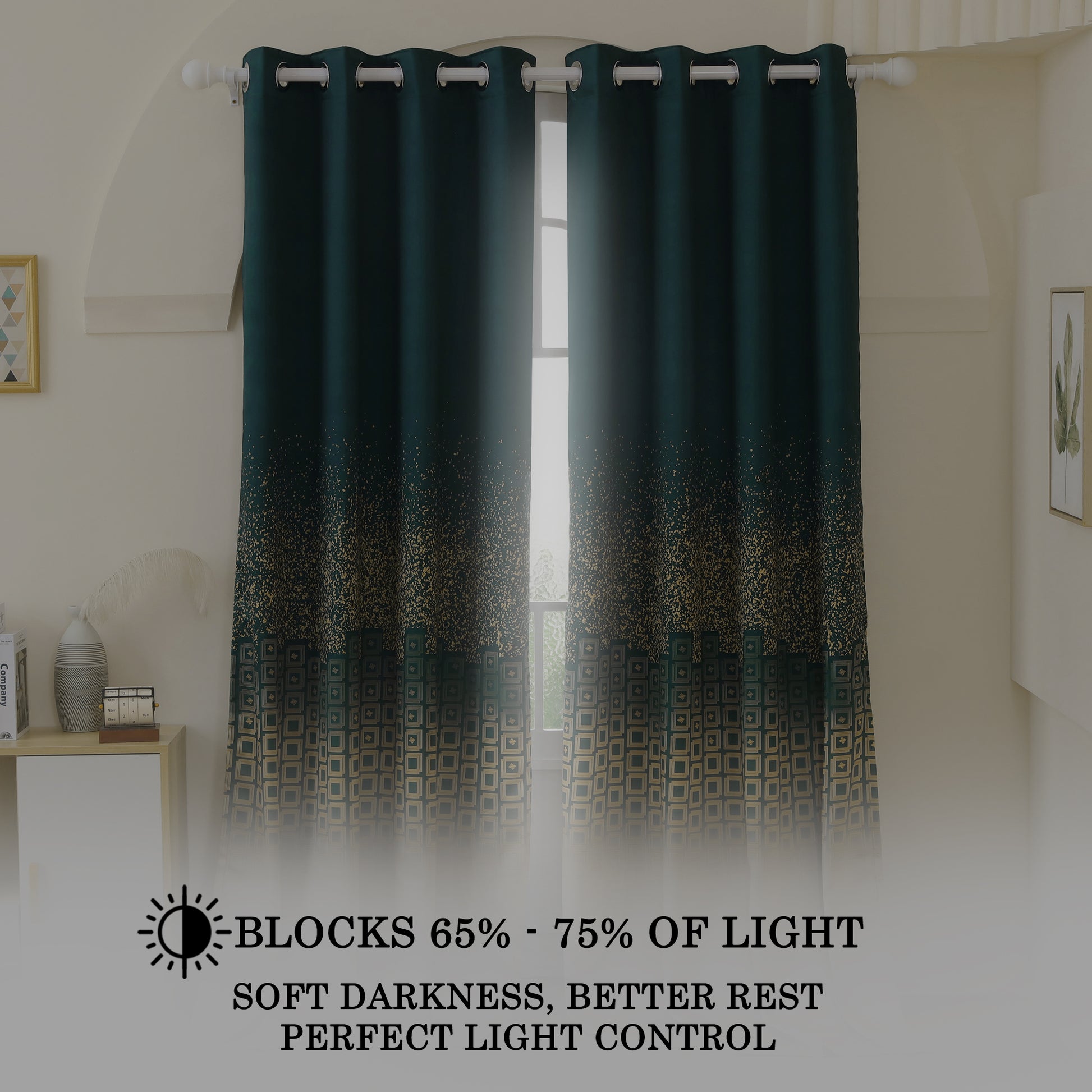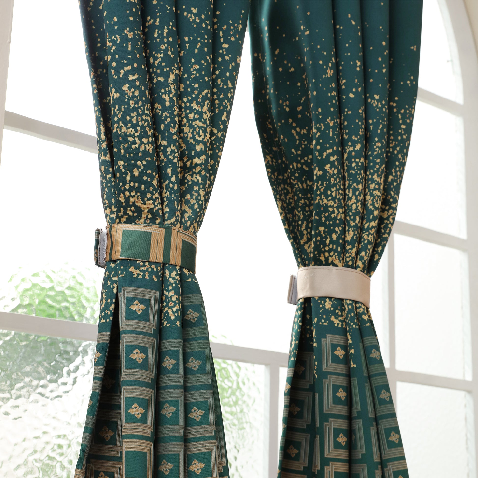 2 Pcs Green and Beige Abstract Digital Faux Silk Medium room Darkening Window | Door | Long Door Curtains