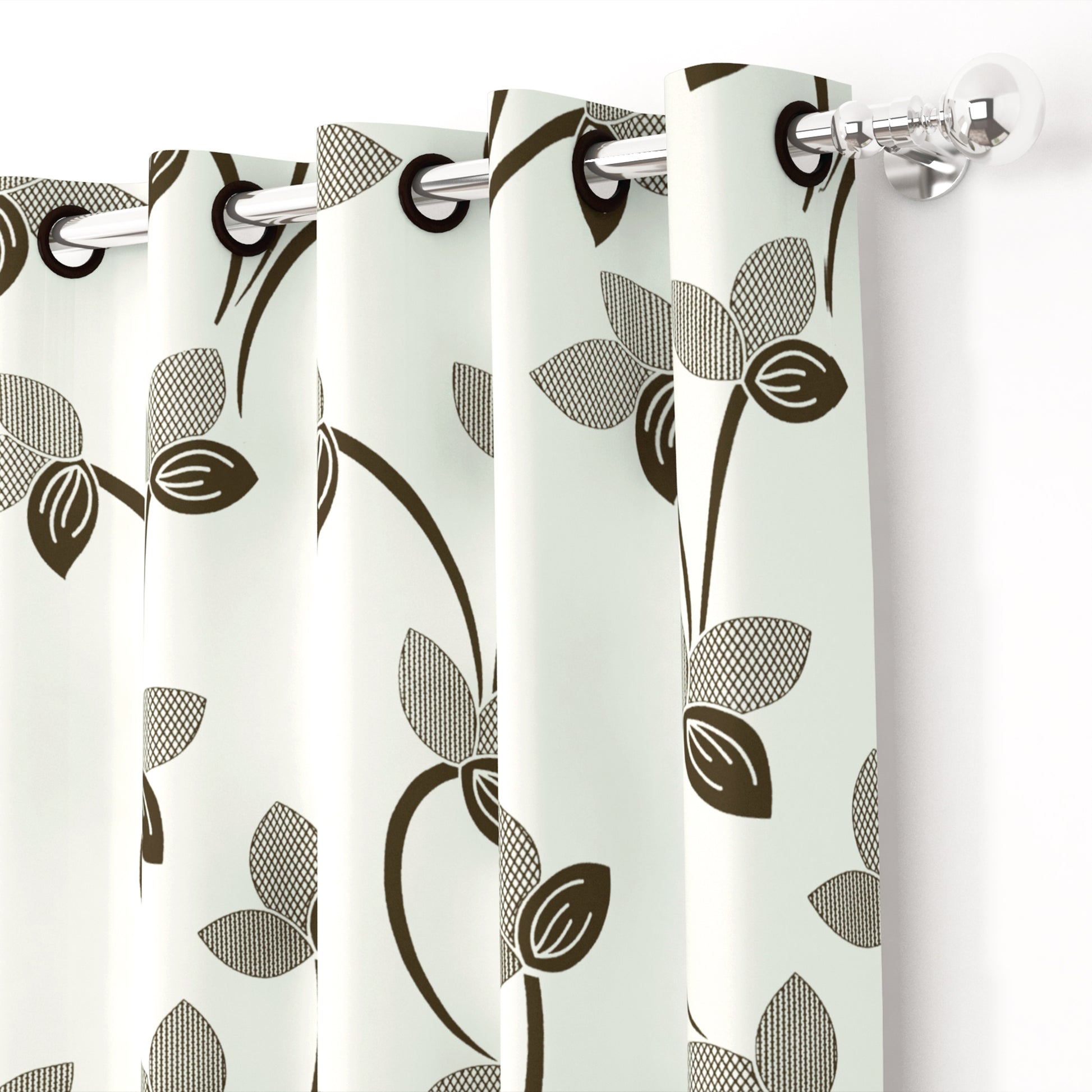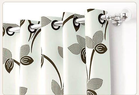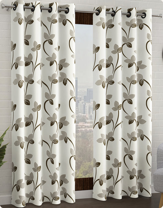 2 Pcs White Nature Floral Print Polyester Window/Door/Long Door Curtains