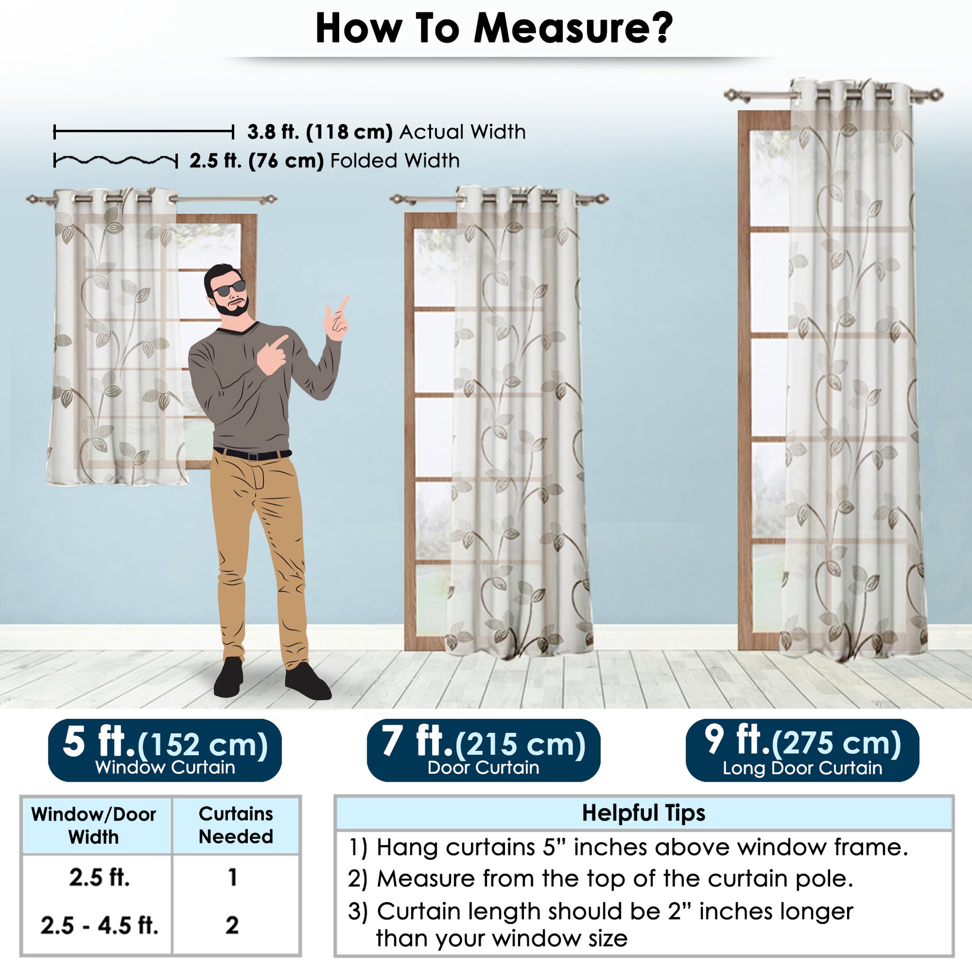 2 U Curtains - Window (118cm X 152cm), Door (118 cm X 215cm) or Long Door (118cm X 275cm) |