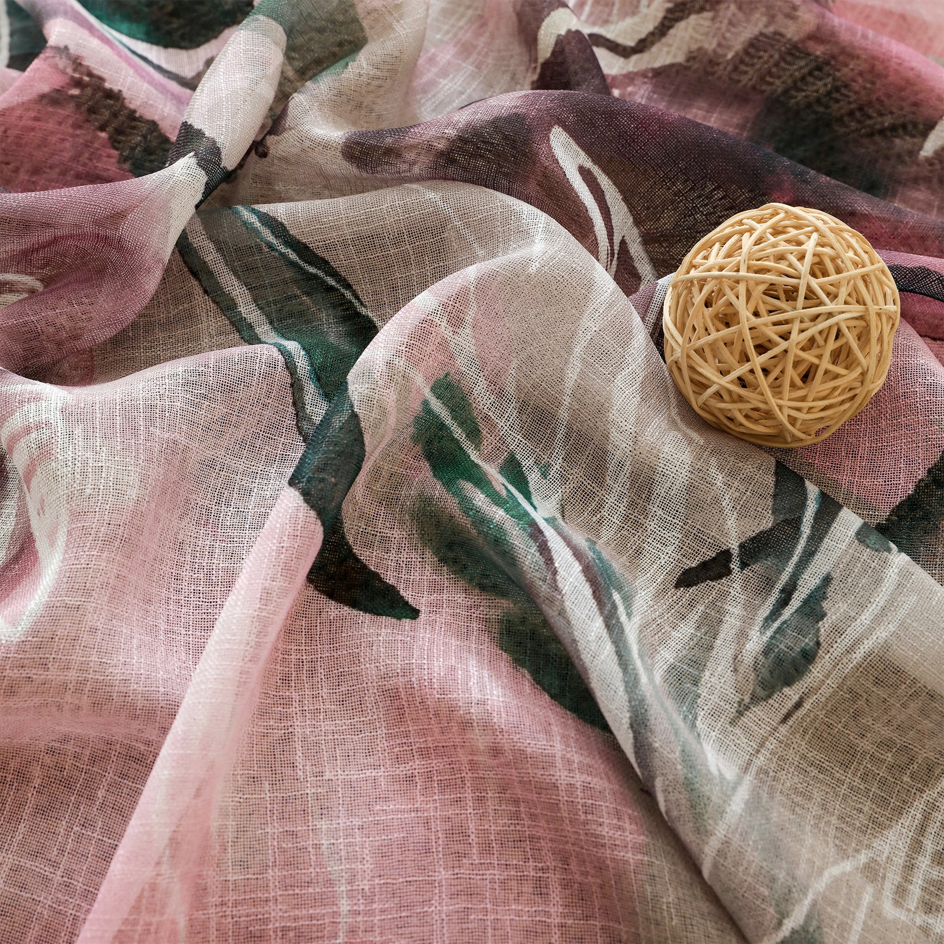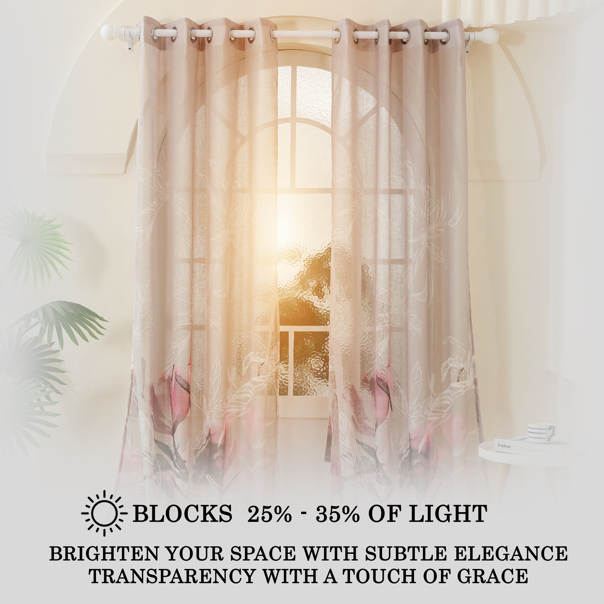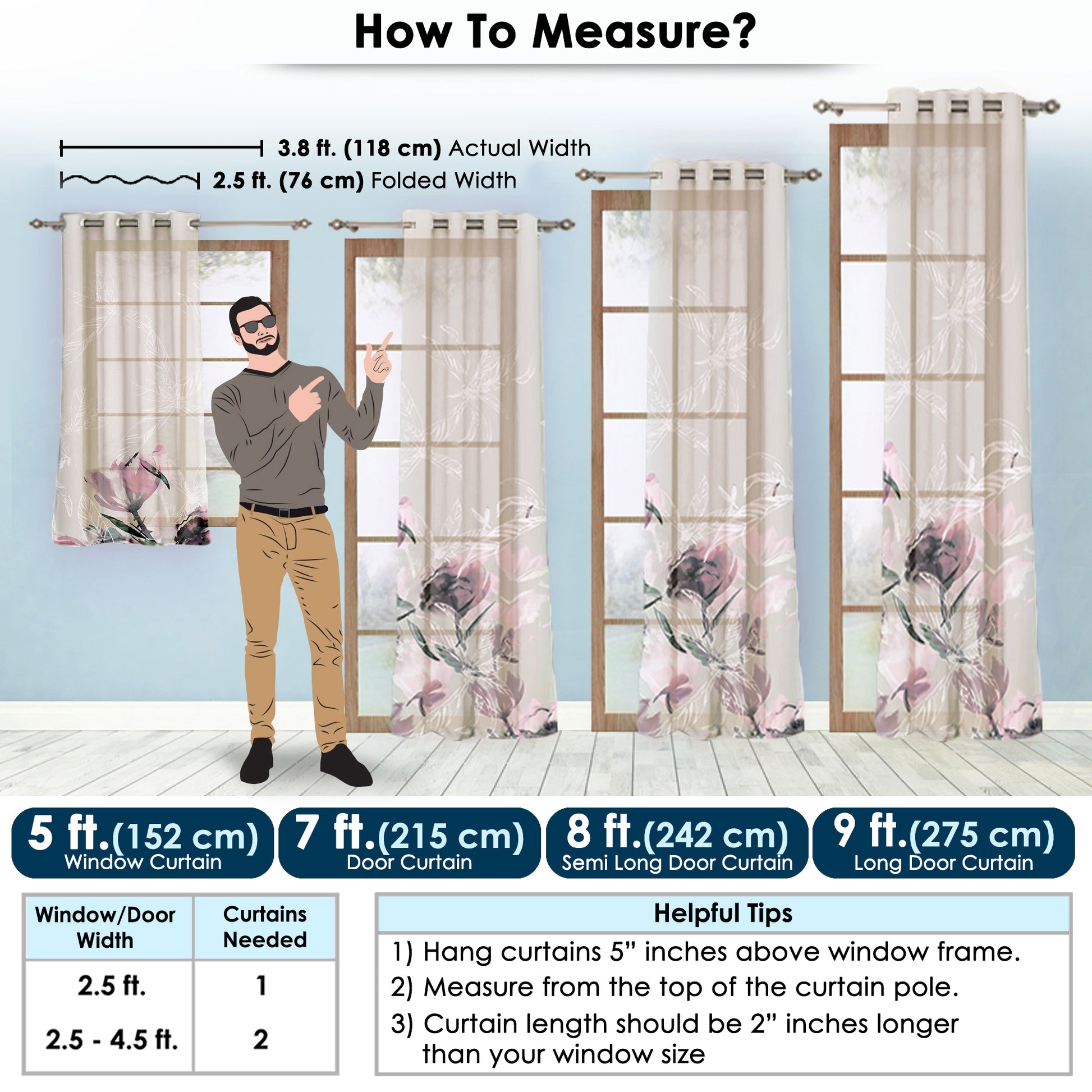 2 Pcs Grey & Pink Sheer Window / Door / Semi Long Door/ Long Door Curtains