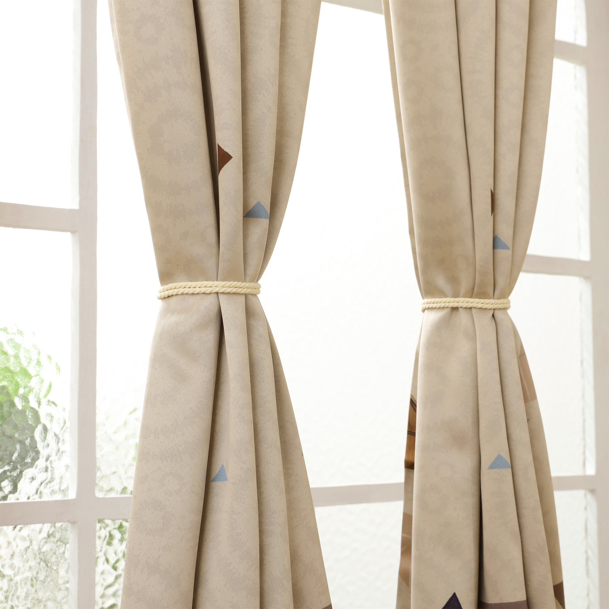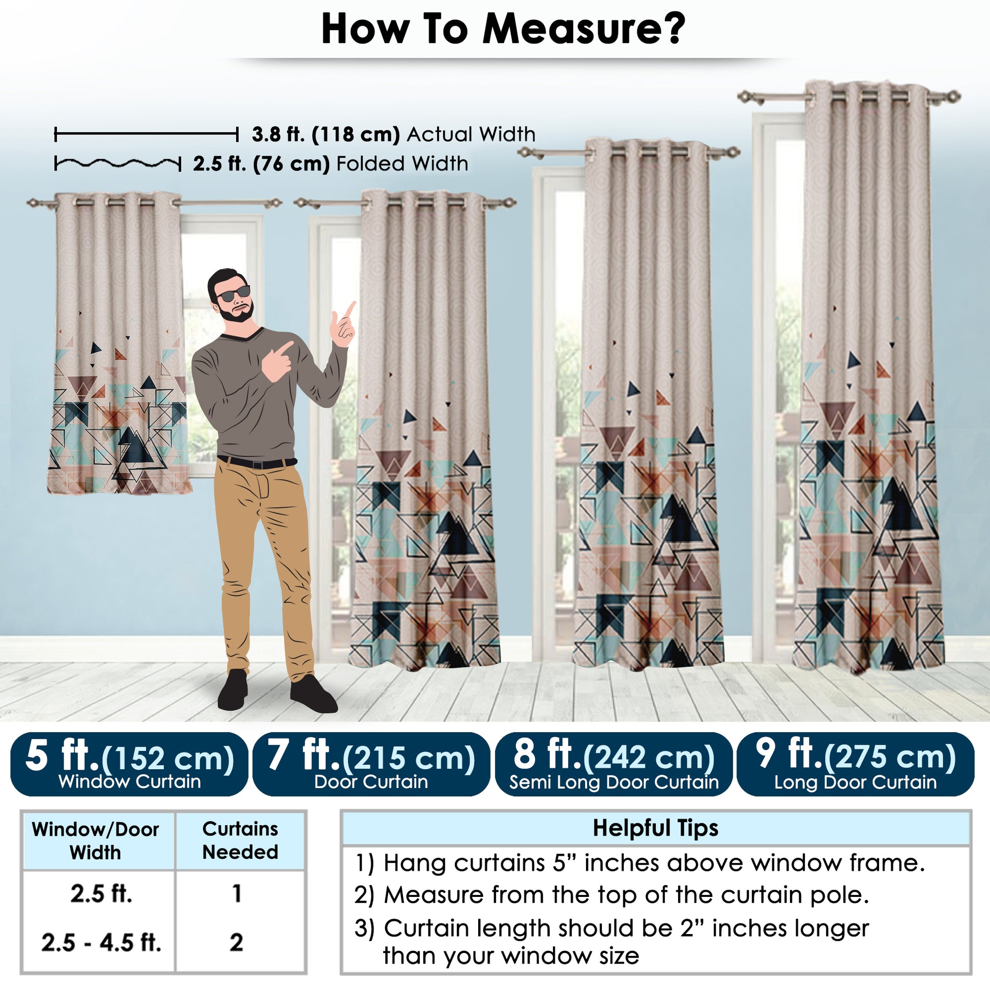 2 Pcs Ivory Geometric Digital Faux Silk Medium room Darkening Window | Door | Long Door Curtains