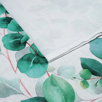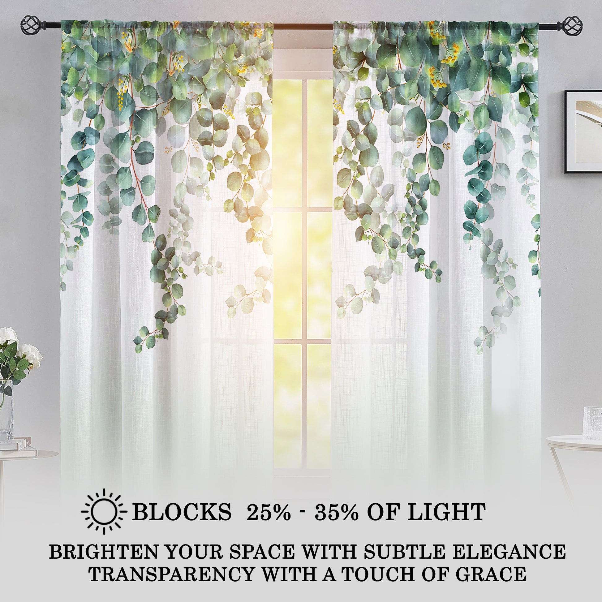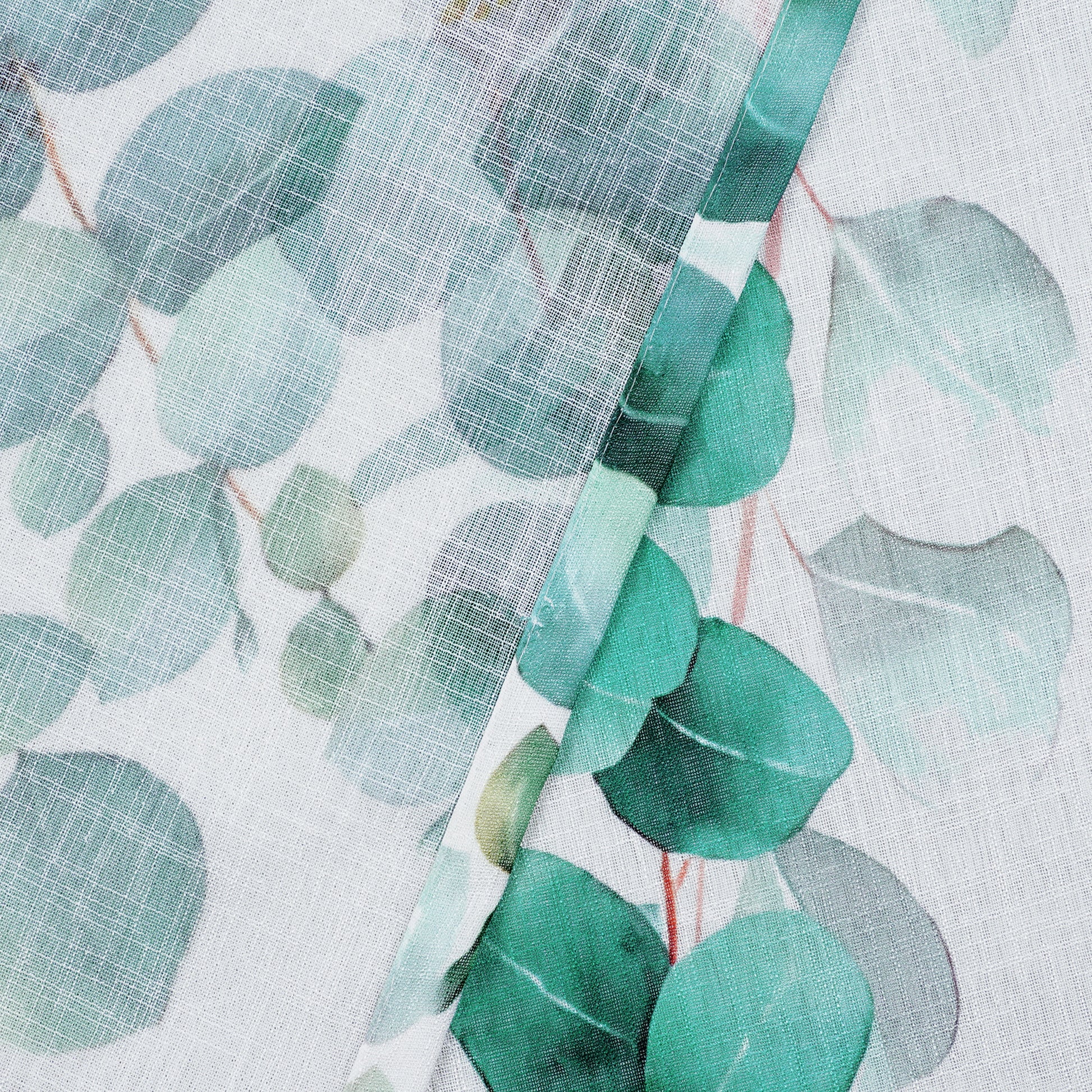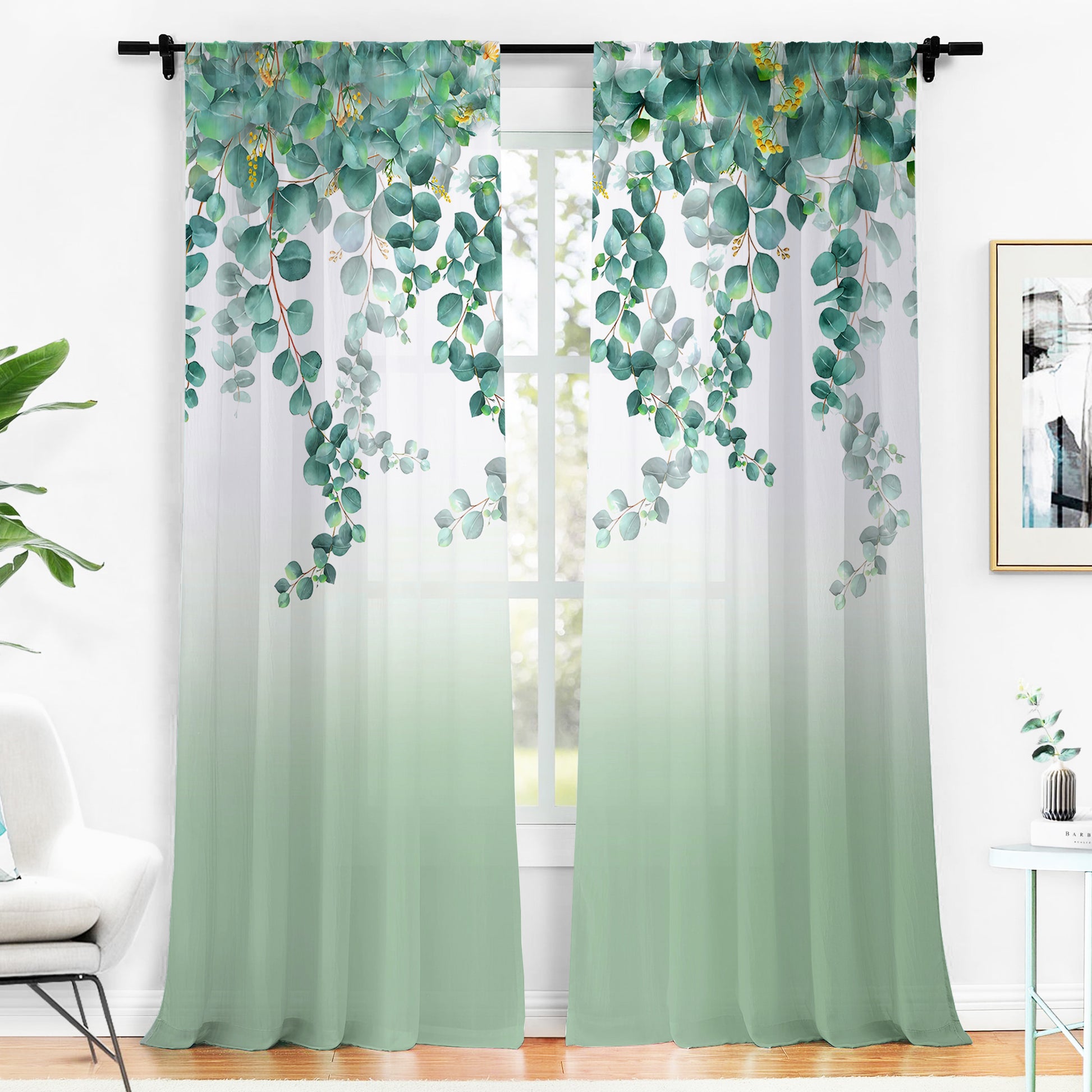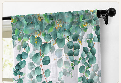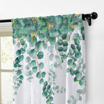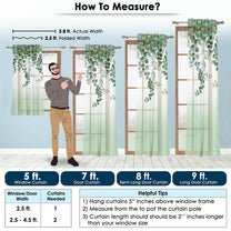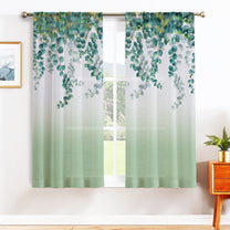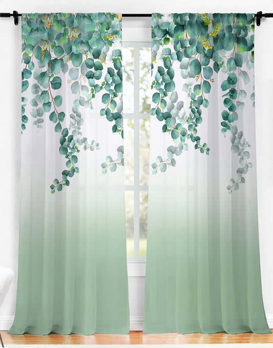 2 Pcs White & Green Picasso Sheer Hanging Eucalyptus Print Window,Door,Semi Long Door & Long Door Curtains