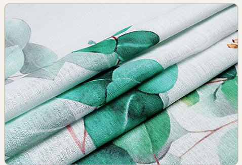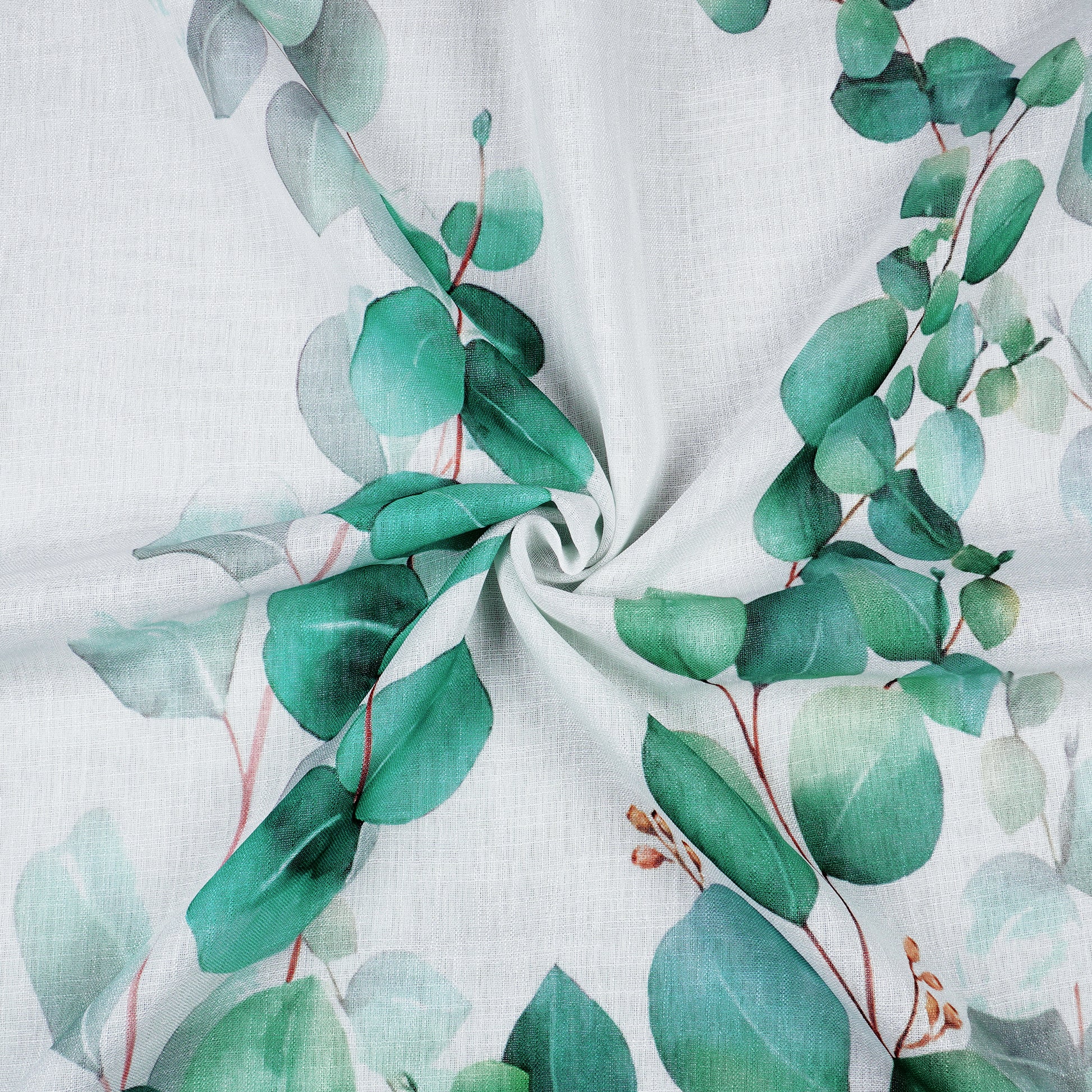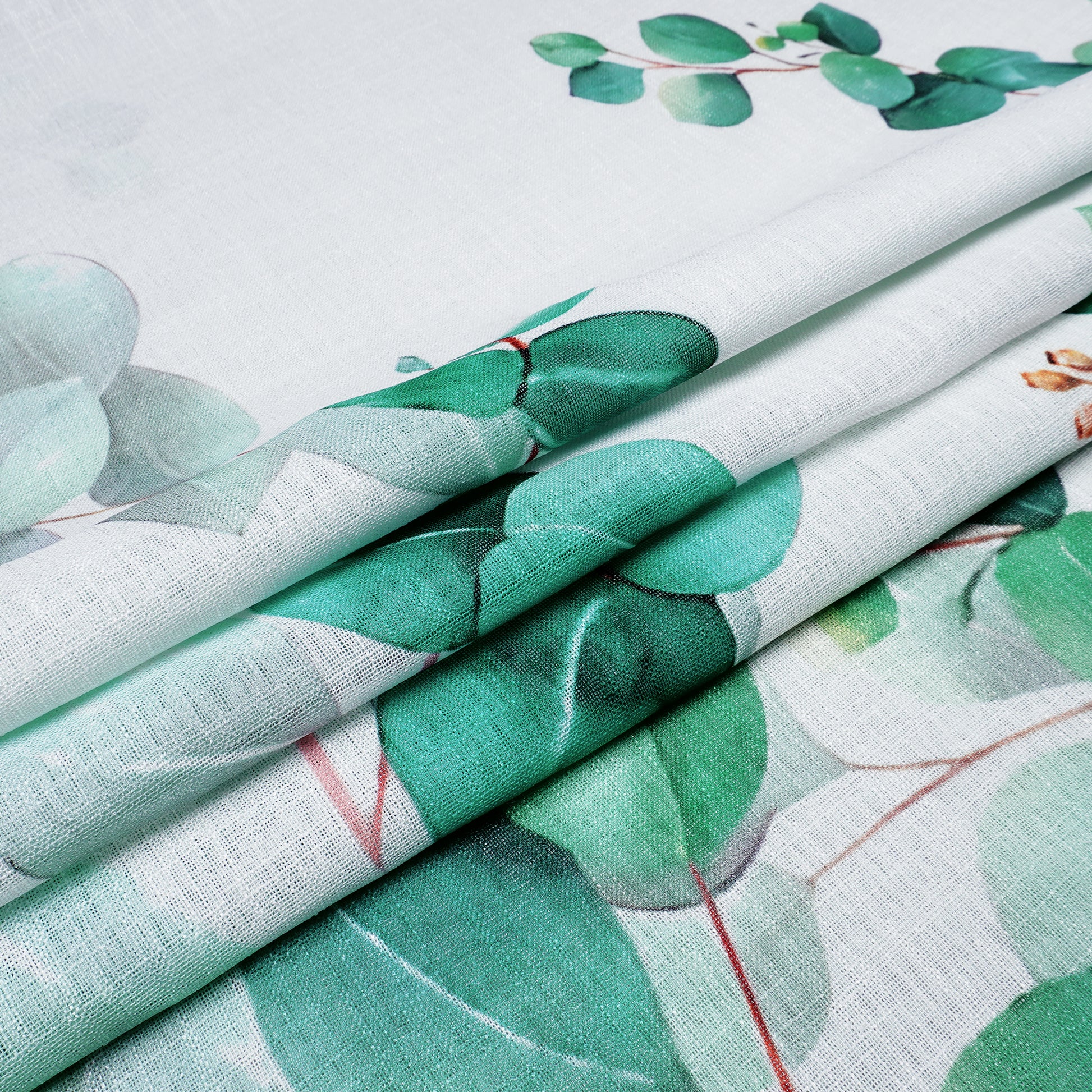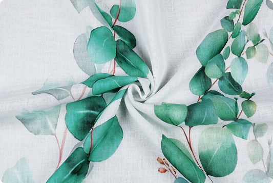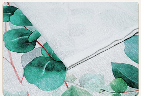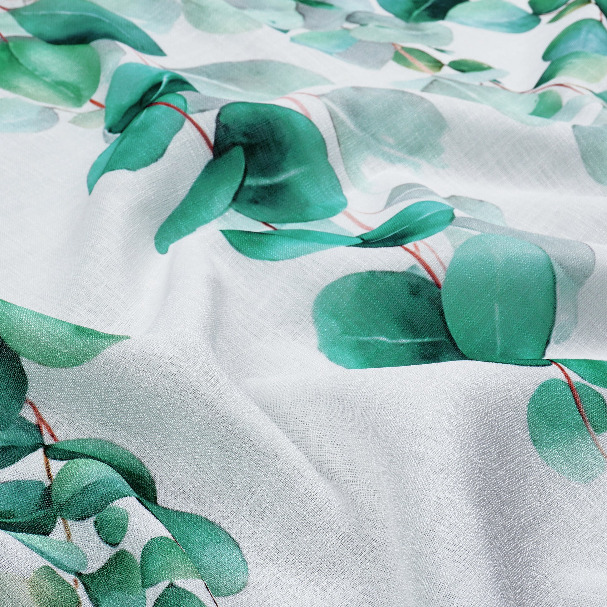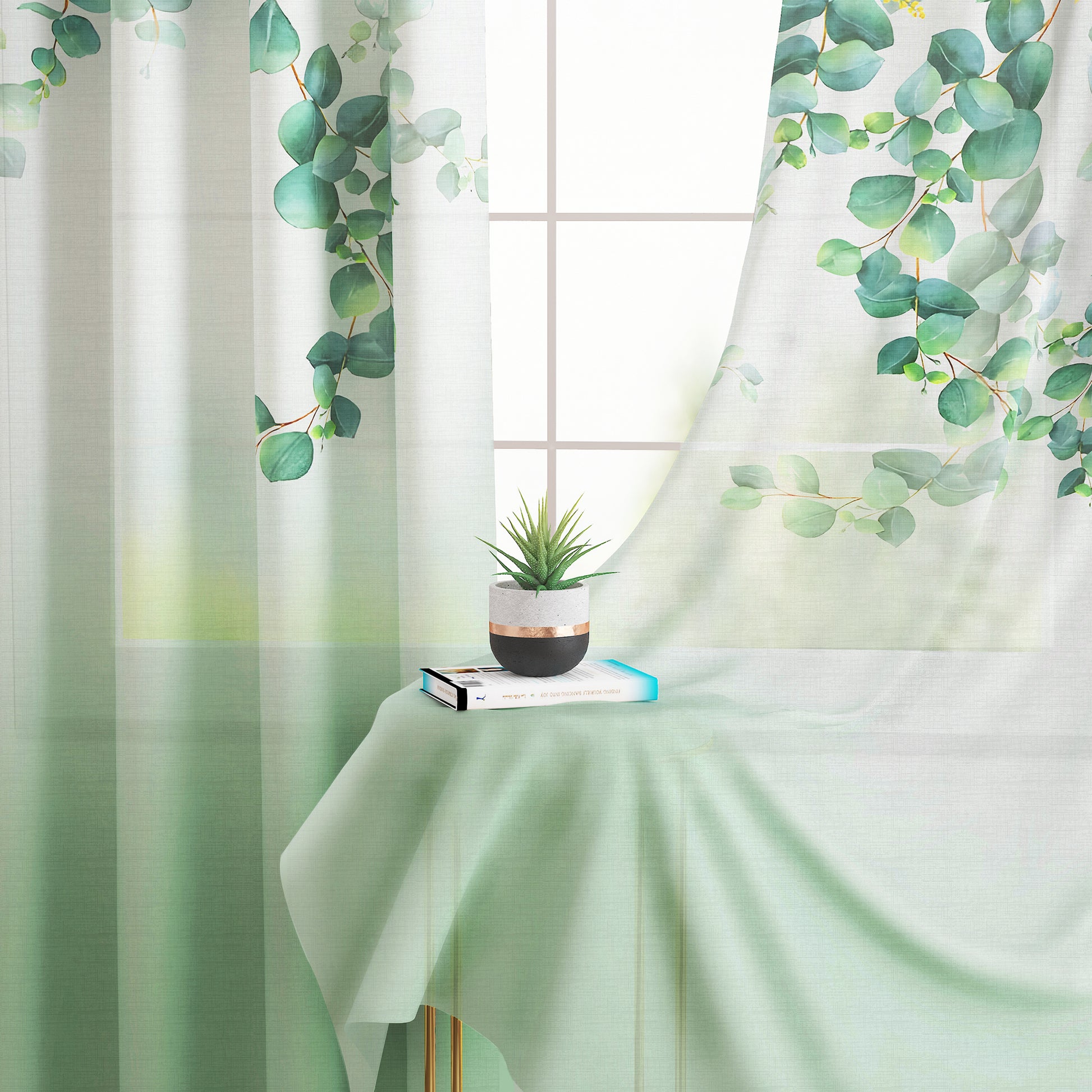 2 Pcs White & Green Picasso Sheer Hanging Eucalyptus Print Window,Door,Semi Long Door & Long Door Curtains