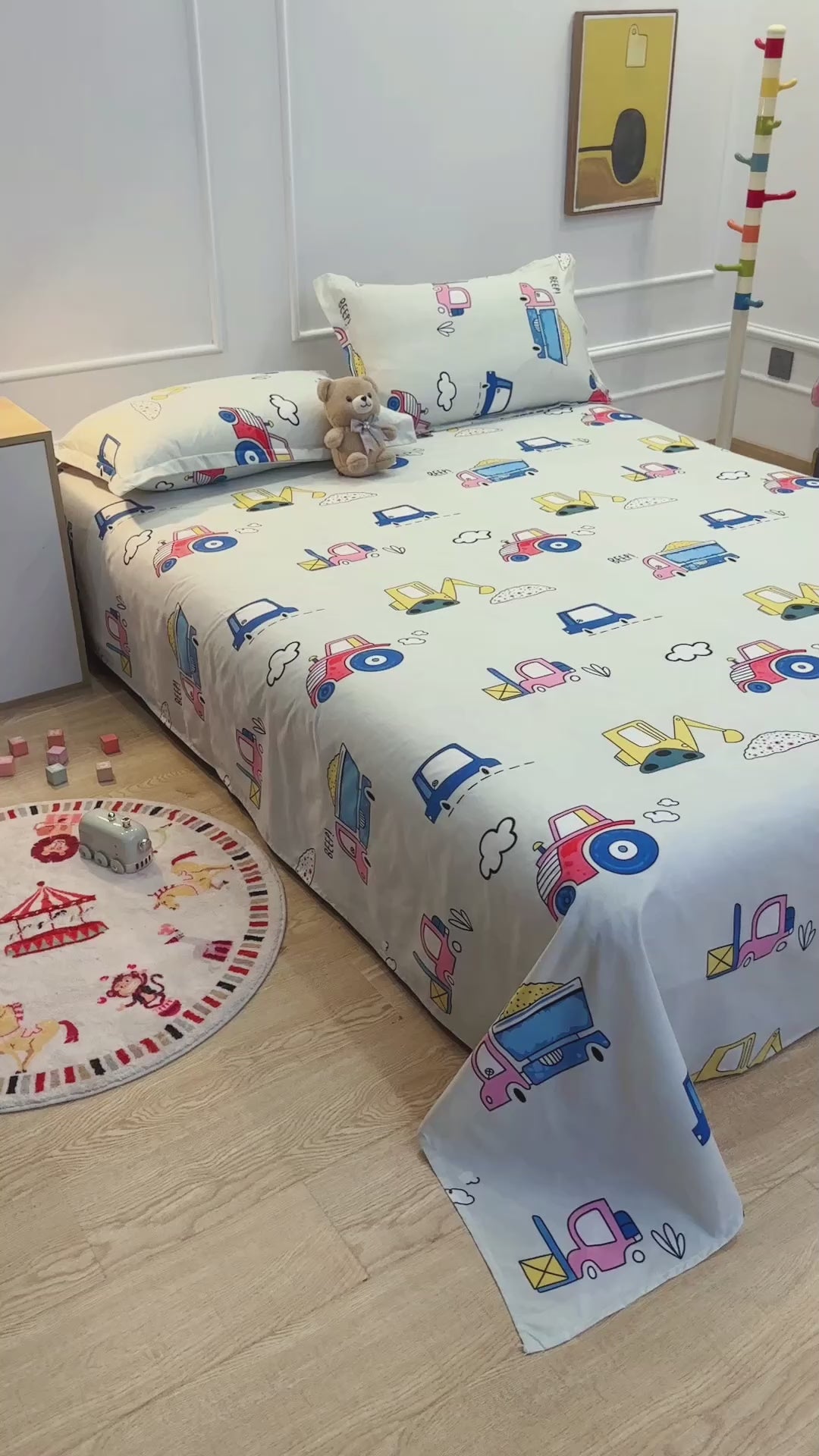 Arena Kids 180 TC Light Grey & Blue Double Size Bedsheet With 2 Pillow Cover