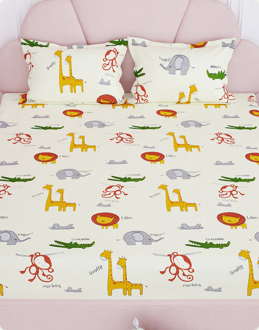 Arena Kids 180 TC Off White & Brown Double Size Bedsheet With 2 Pillow Cover