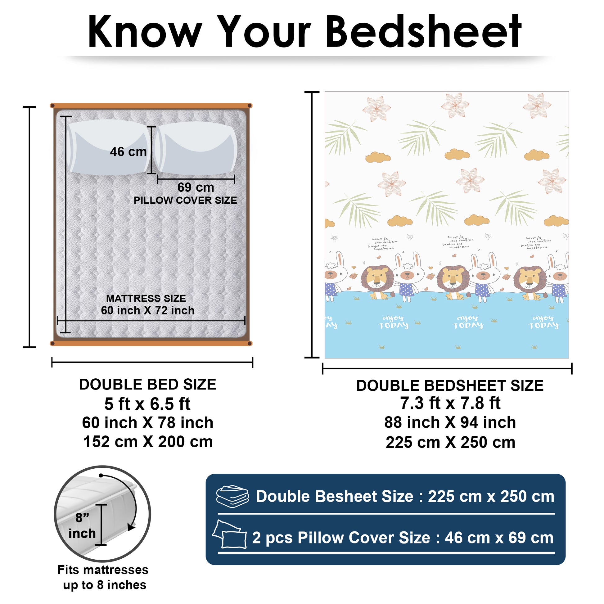 Double Bedsheet: 225 x 250 cm | |