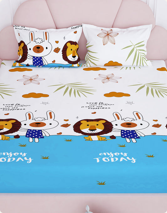 Arena Kids 180 TC White & Brown Double Size Bedsheet With 2 Pillow Cover