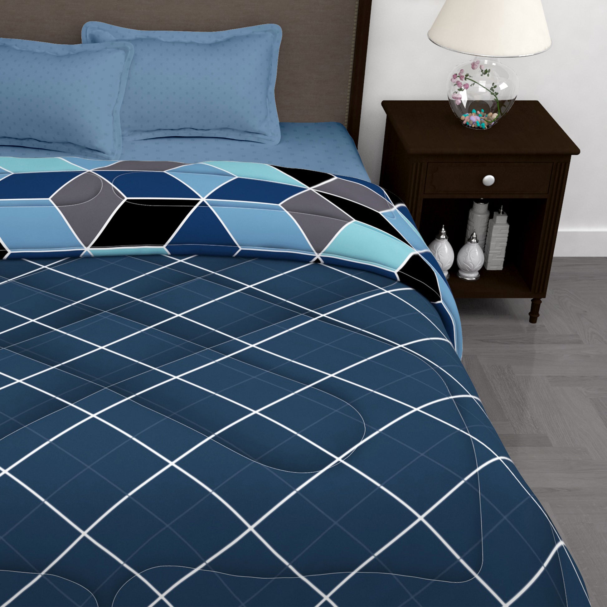 180 GSM Blue Hexagon Microfiber Fusion Reversible Double Comforter
