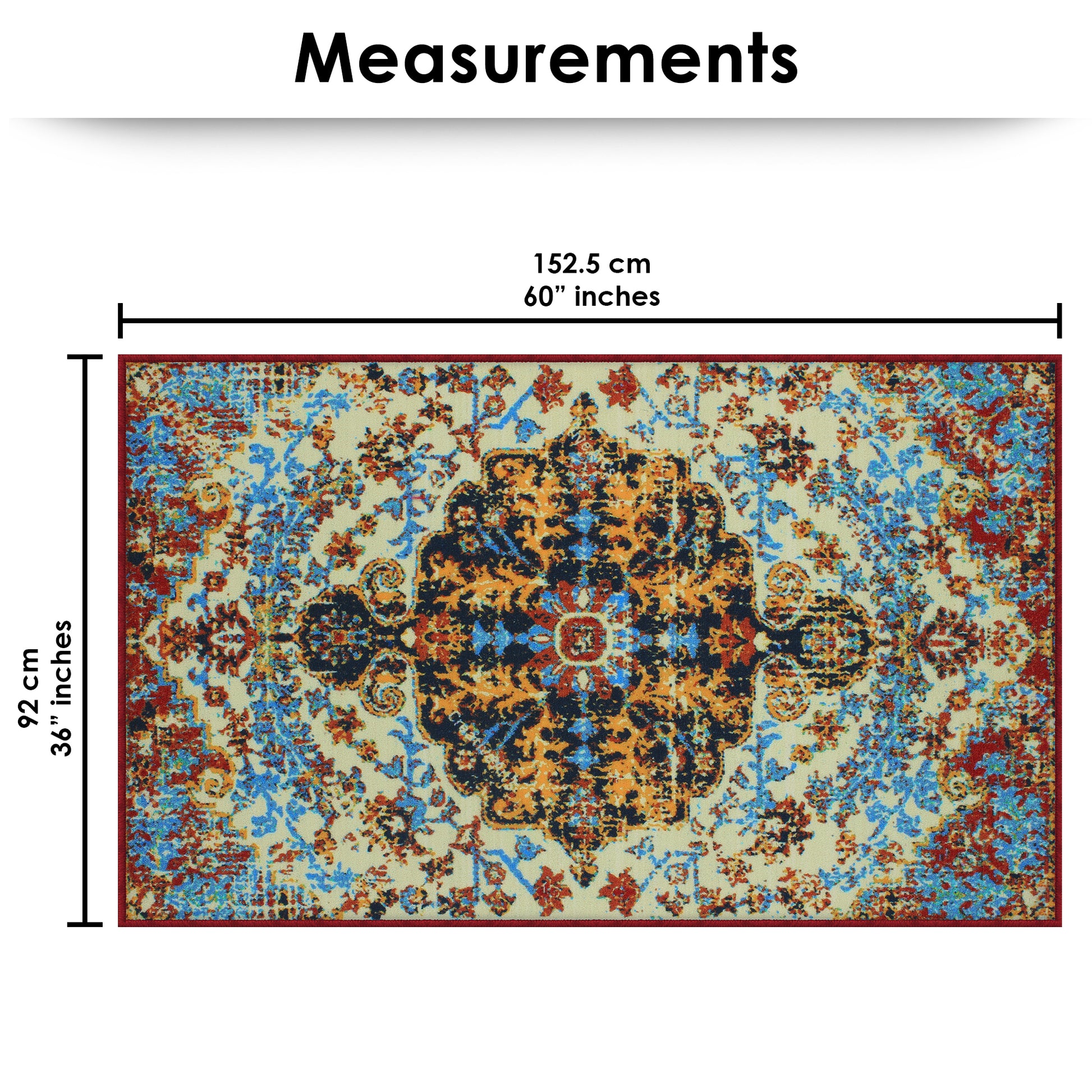 Carpet: 3 ft x 5 ft | Runner: 2 ft x 5 ft |