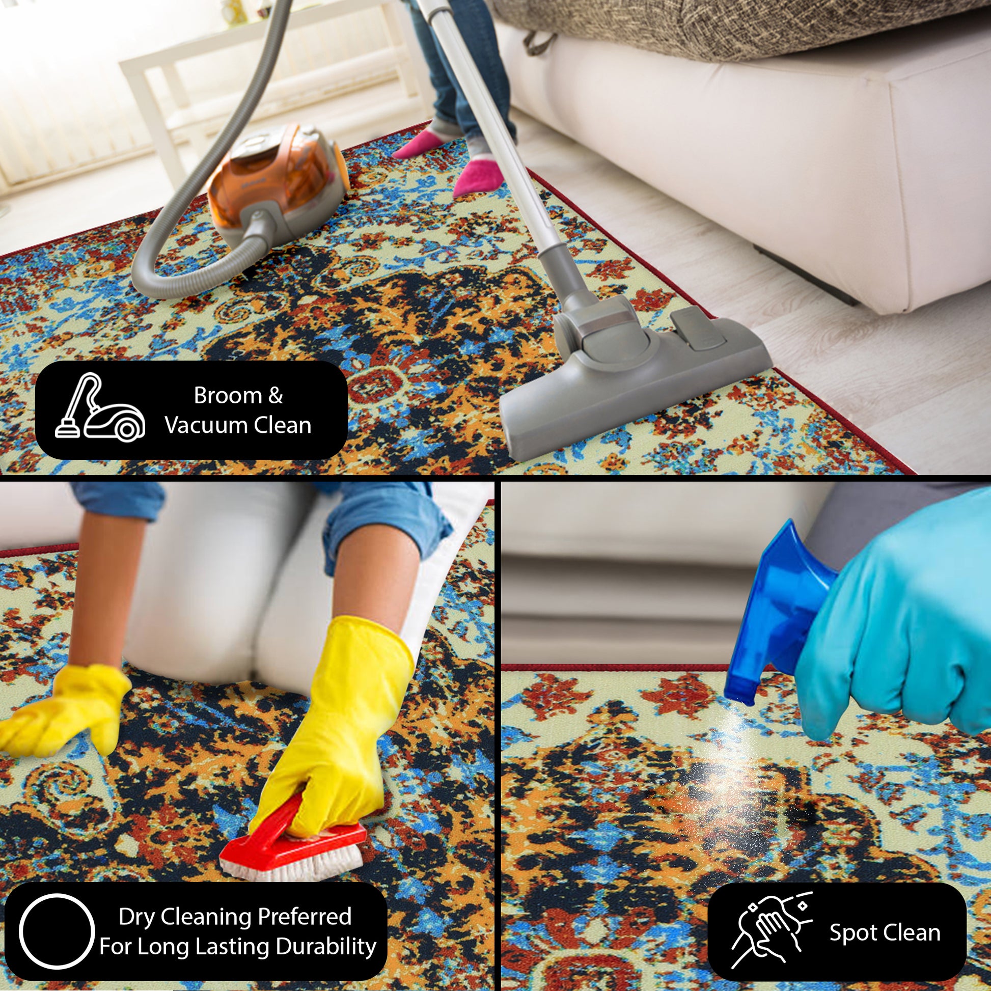 A: Vacuum regularly. For stains, spot clean or dry clean only. Avoid machine washing.