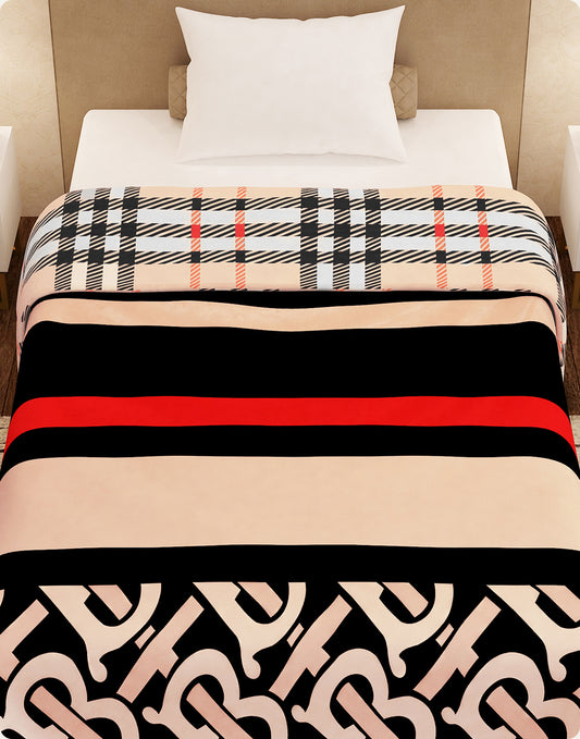 Finley 300 GSM Beige & Black Graphic Single Size Blanket