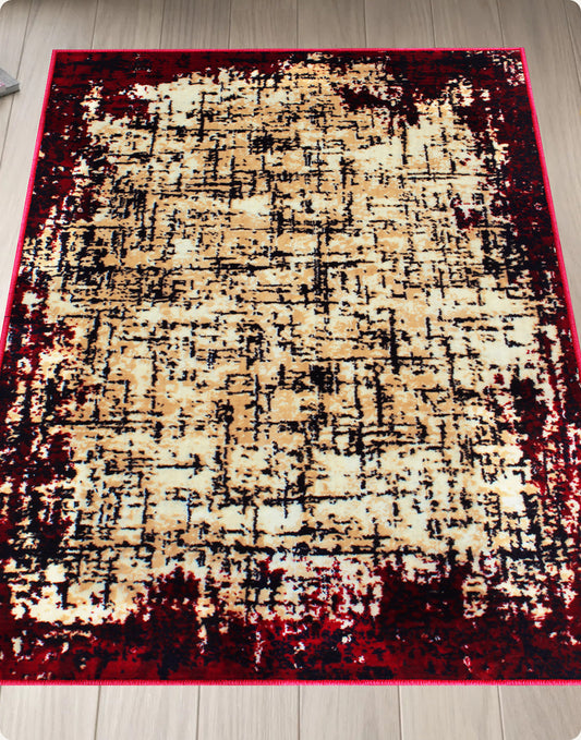 Maroon Criss Cross Grunge Innovia Rug/Carpet with Anti Skid Backing
