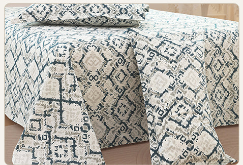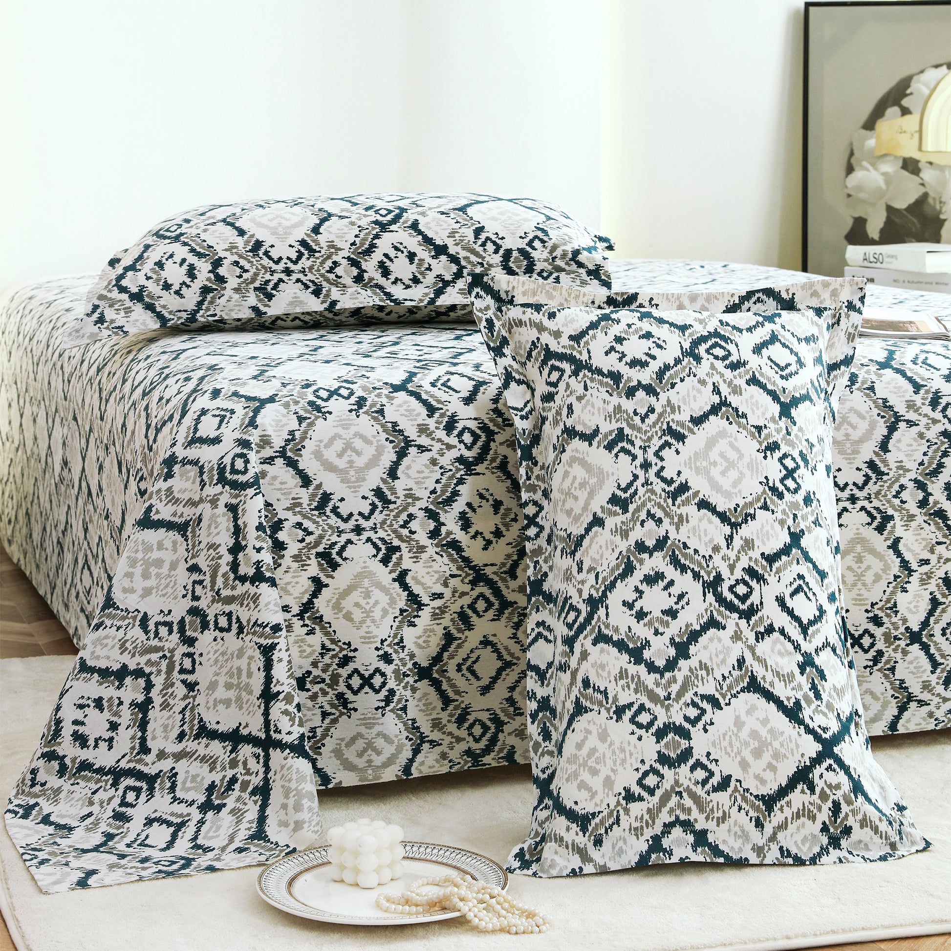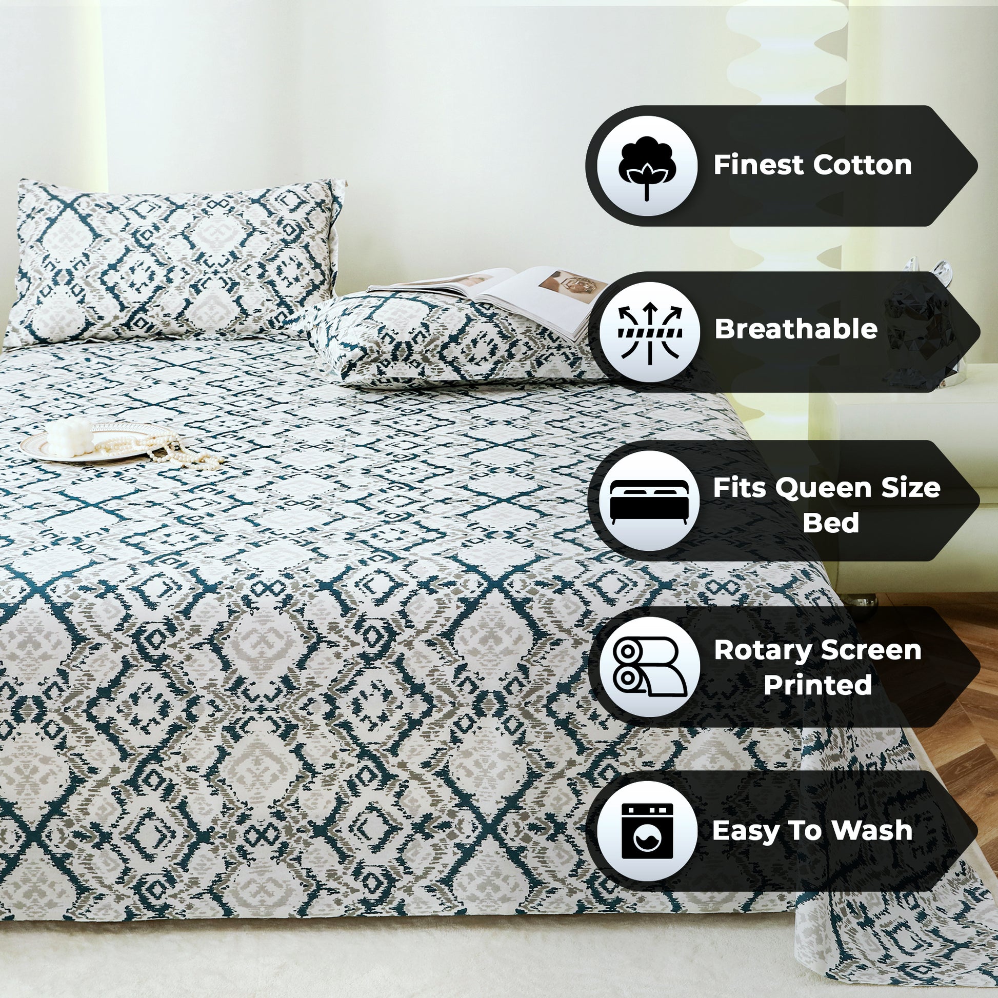 Metro Gold 190 TC Cotton Dark Teal & Grey Double Bedsheet with Pillow Covers