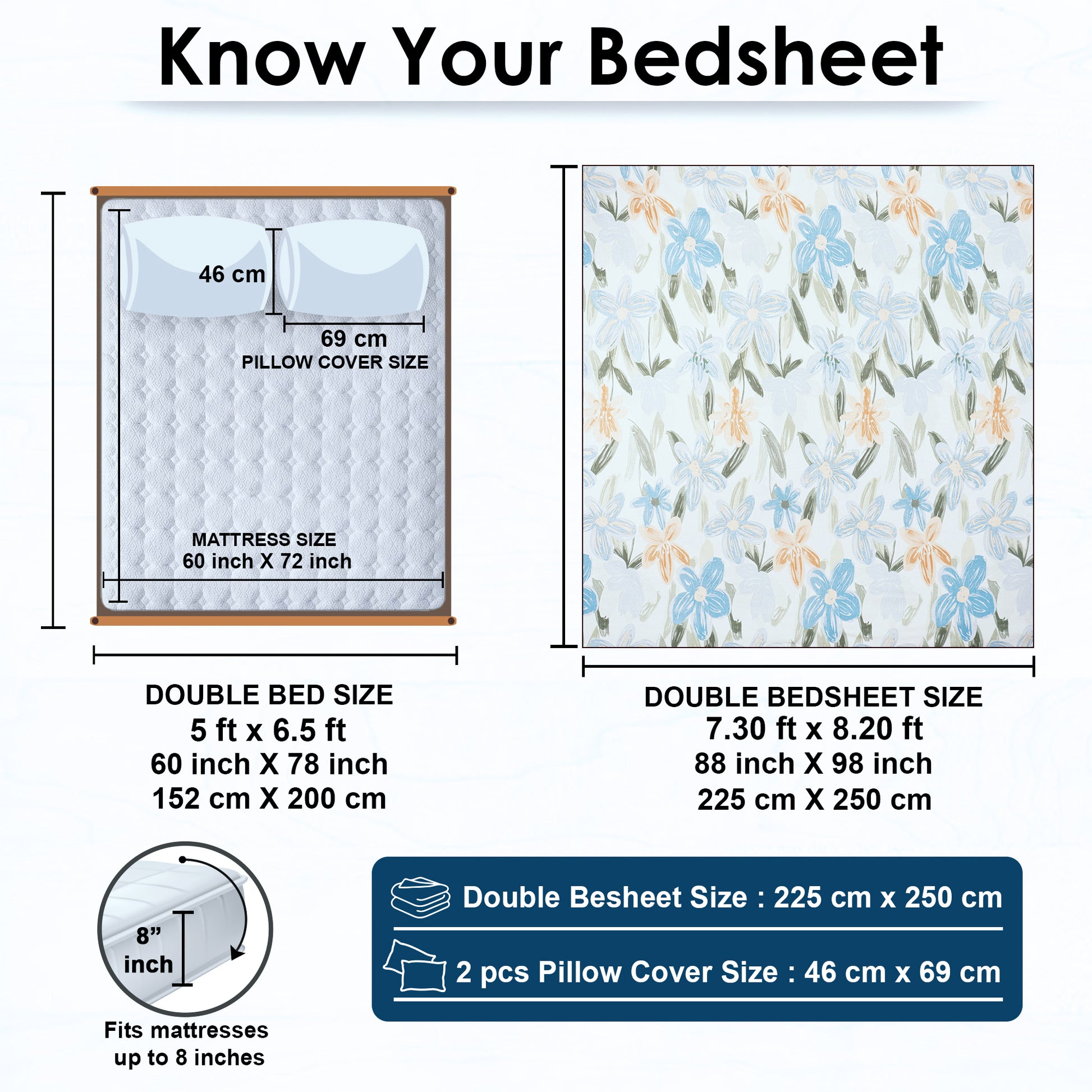 Double Bedsheet : 225 X 250 cm | Pillow Cover : 46 X 69 cm |