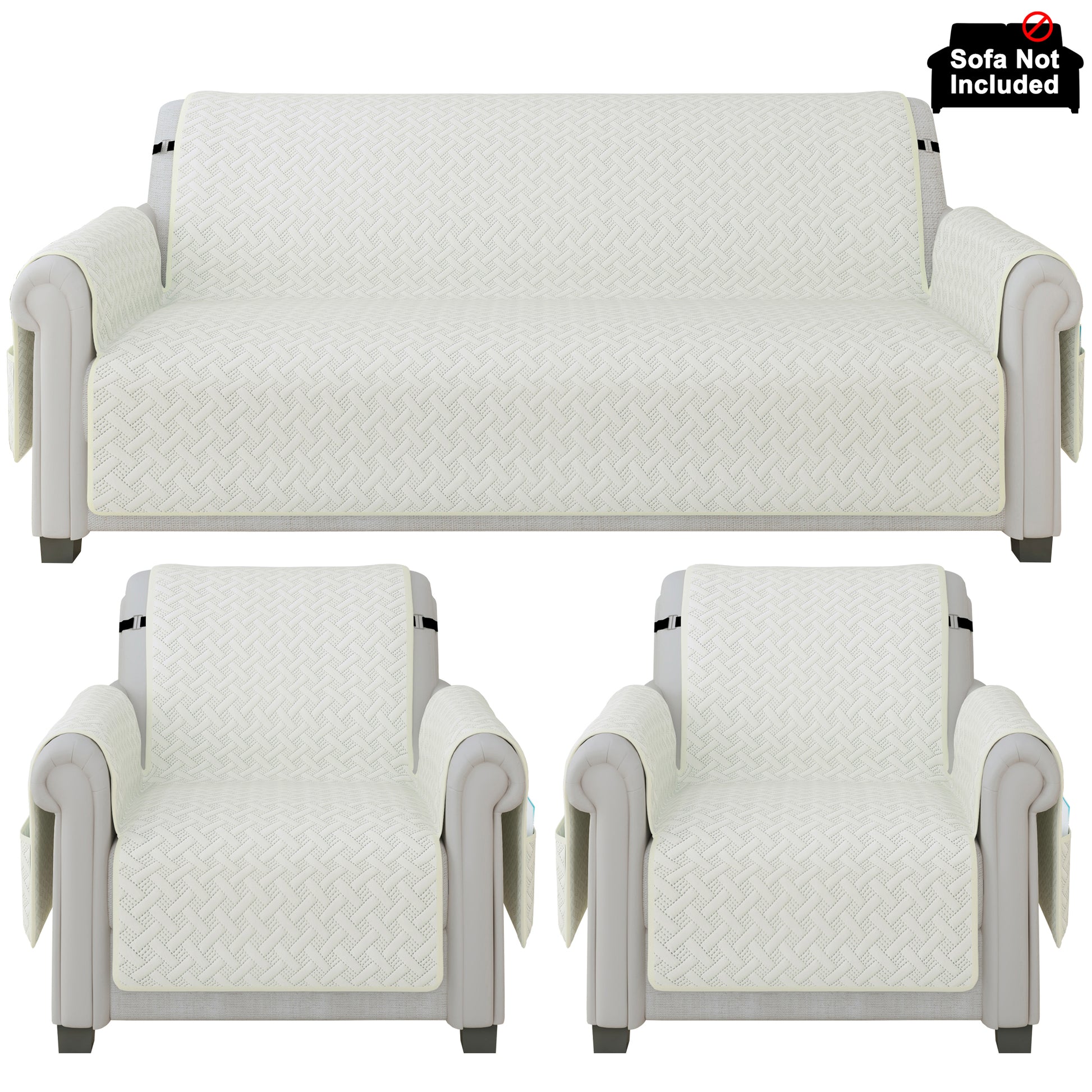 Sofa Throw Cover Combo – 2 Pcs 1 Seater and 1 Pc 3 Seater Off White Solid Pattern with Pocket by Story@Home