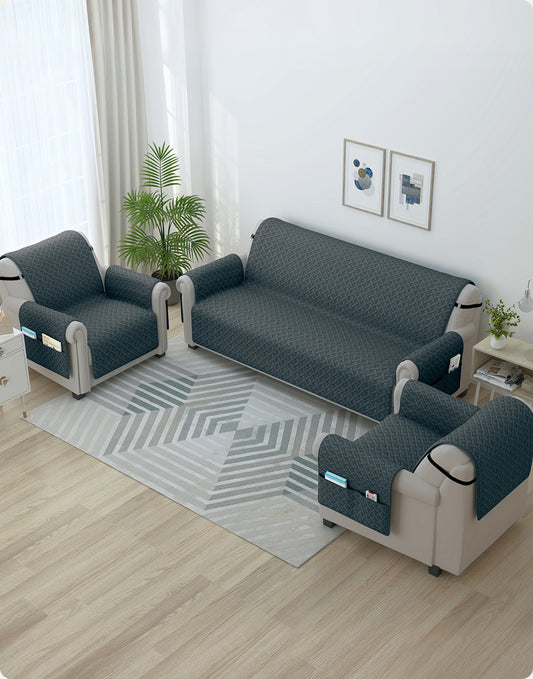 Sofa Throw Cover Combo – 2 Pcs 1 Seater and 1 Pc 3 Seater Grey Solid Pattern with Pocket by Story@Home