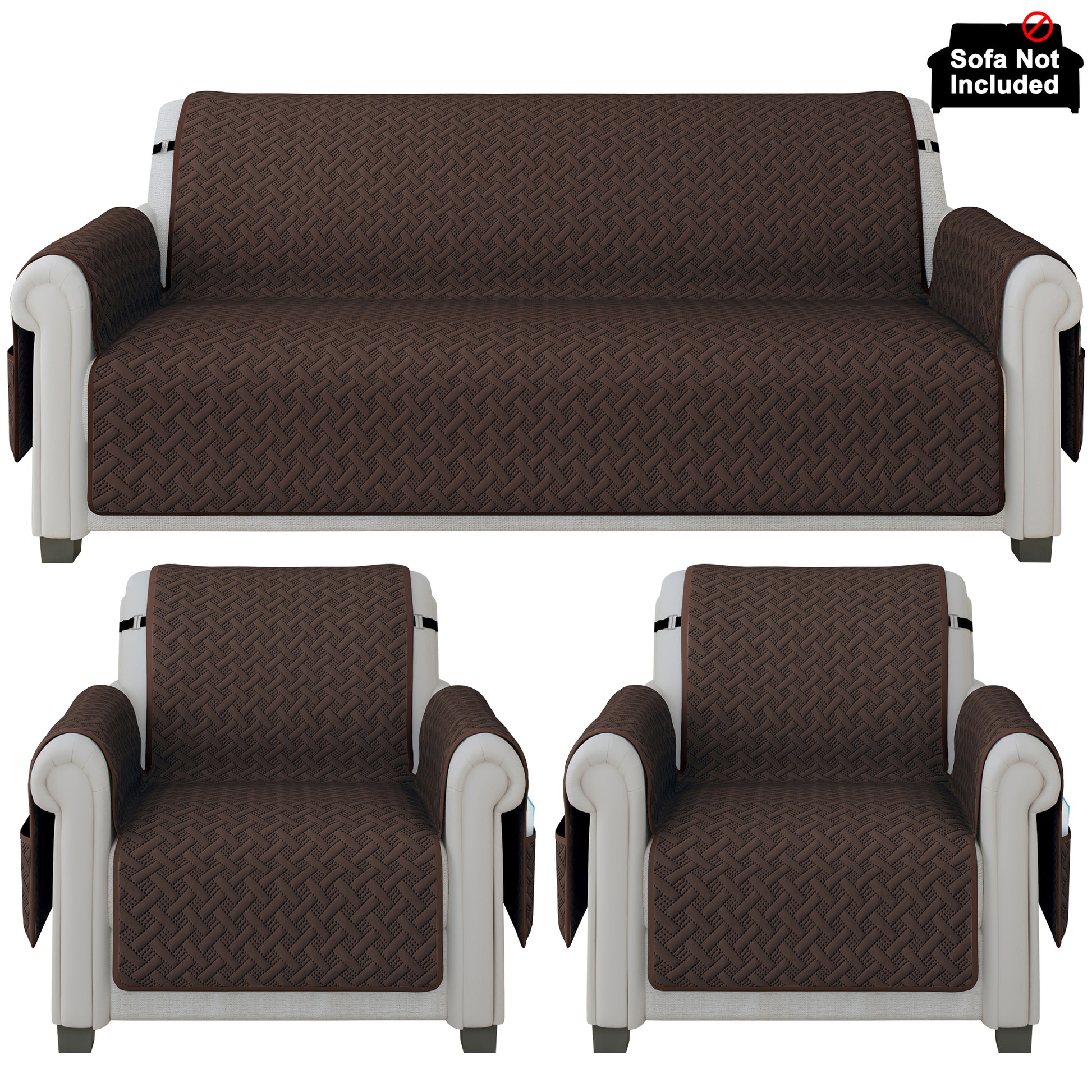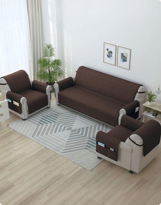 Sofa Throw Cover Combo – 2 Pcs 1 Seater and 1 Pc 3 Seater Brown Solid Pattern with Pocket by Story@Home