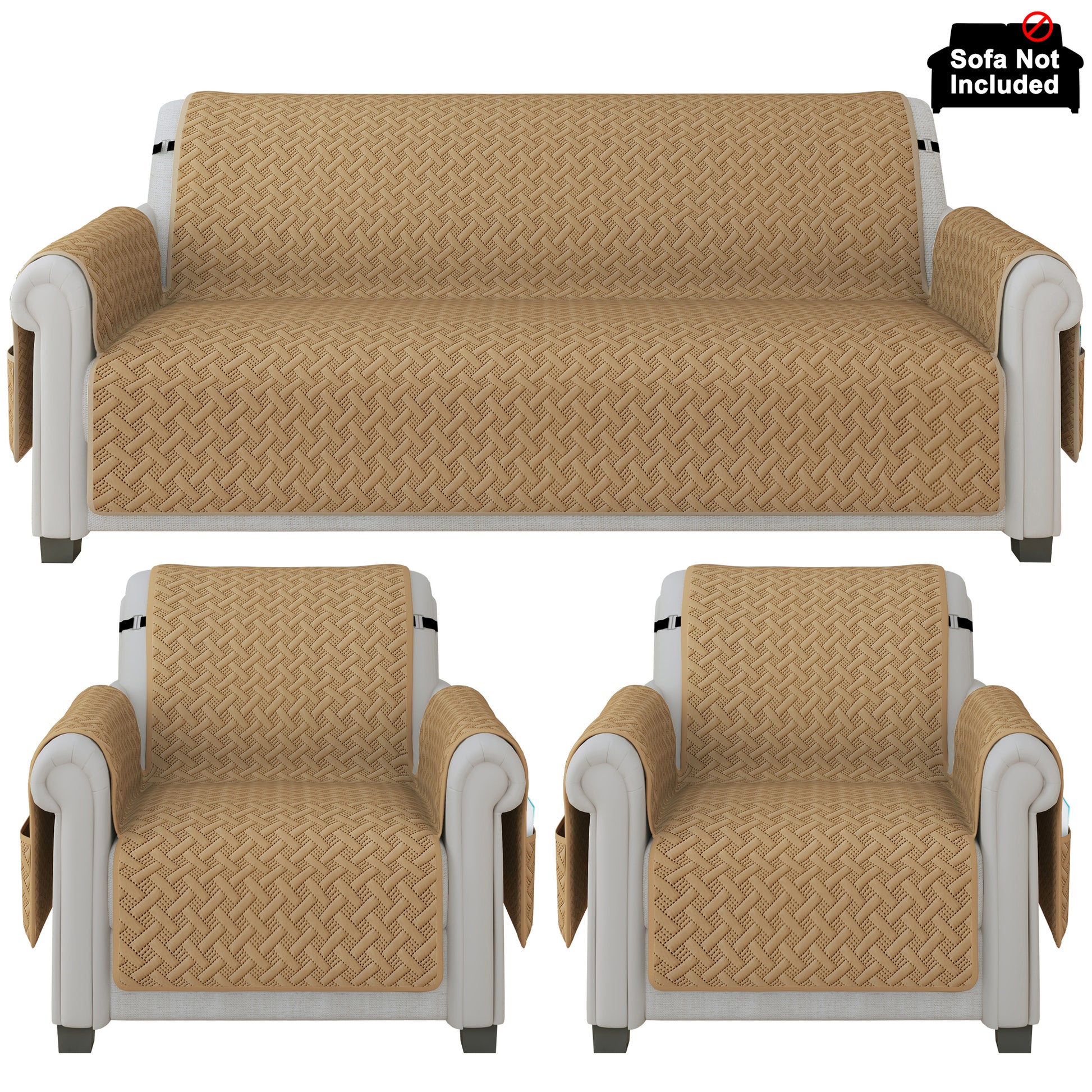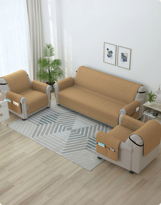 Sofa Throw Cover Combo – 2 Pcs 1 Seater and 1 Pc 3 Seater Beige Solid Pattern with Pocket by Story@Home
