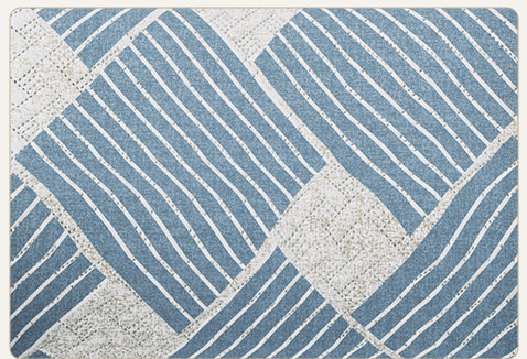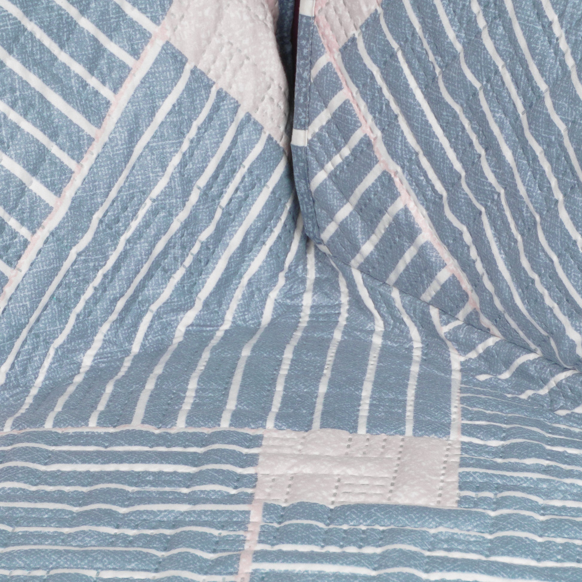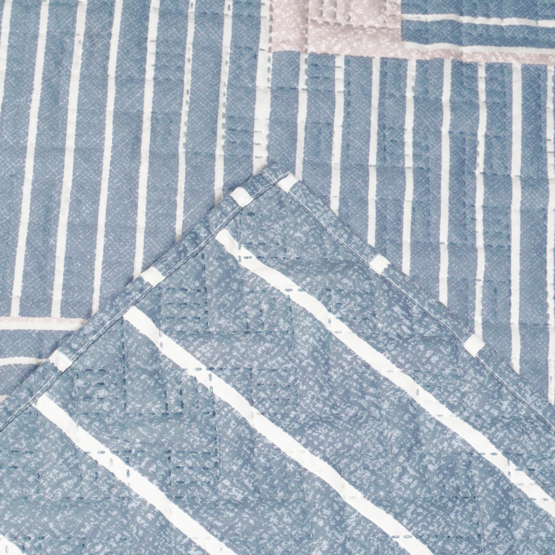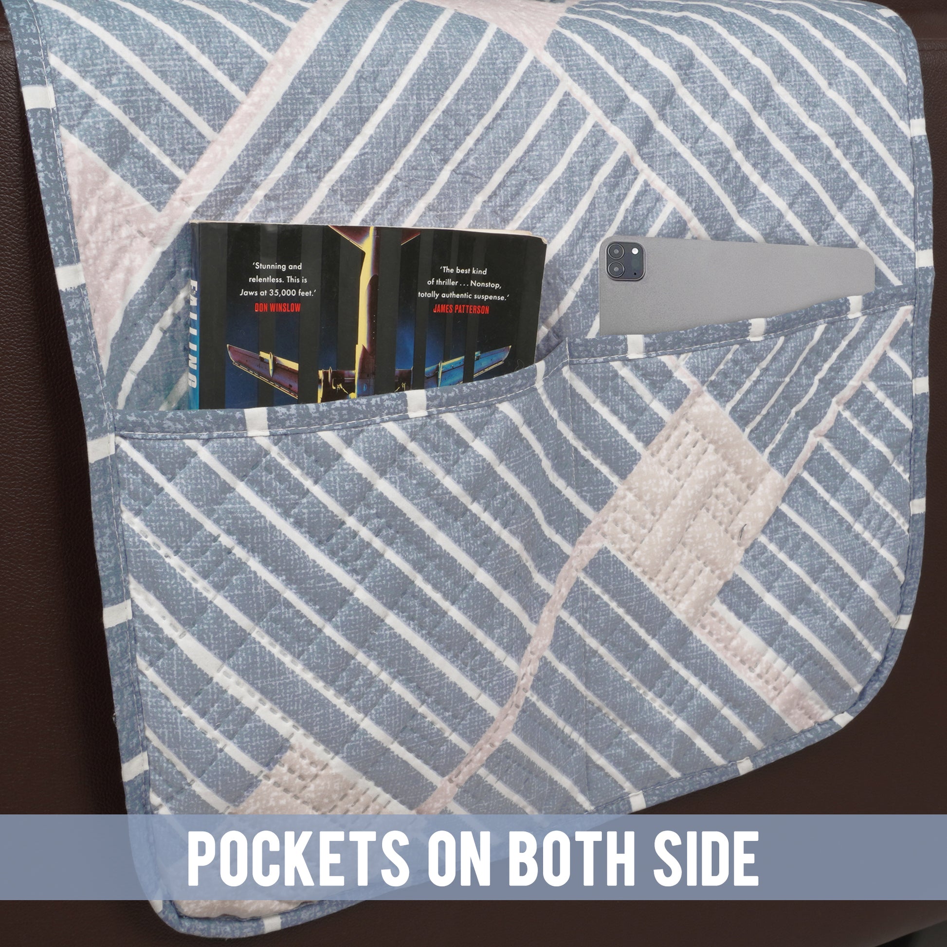 Sofa Throw Cover Combo – 2 Pcs 1 Seater and 1 Pc 3 Seater Greyish Blue Geometric & Stripes Pattern with Pocket by Story@Home