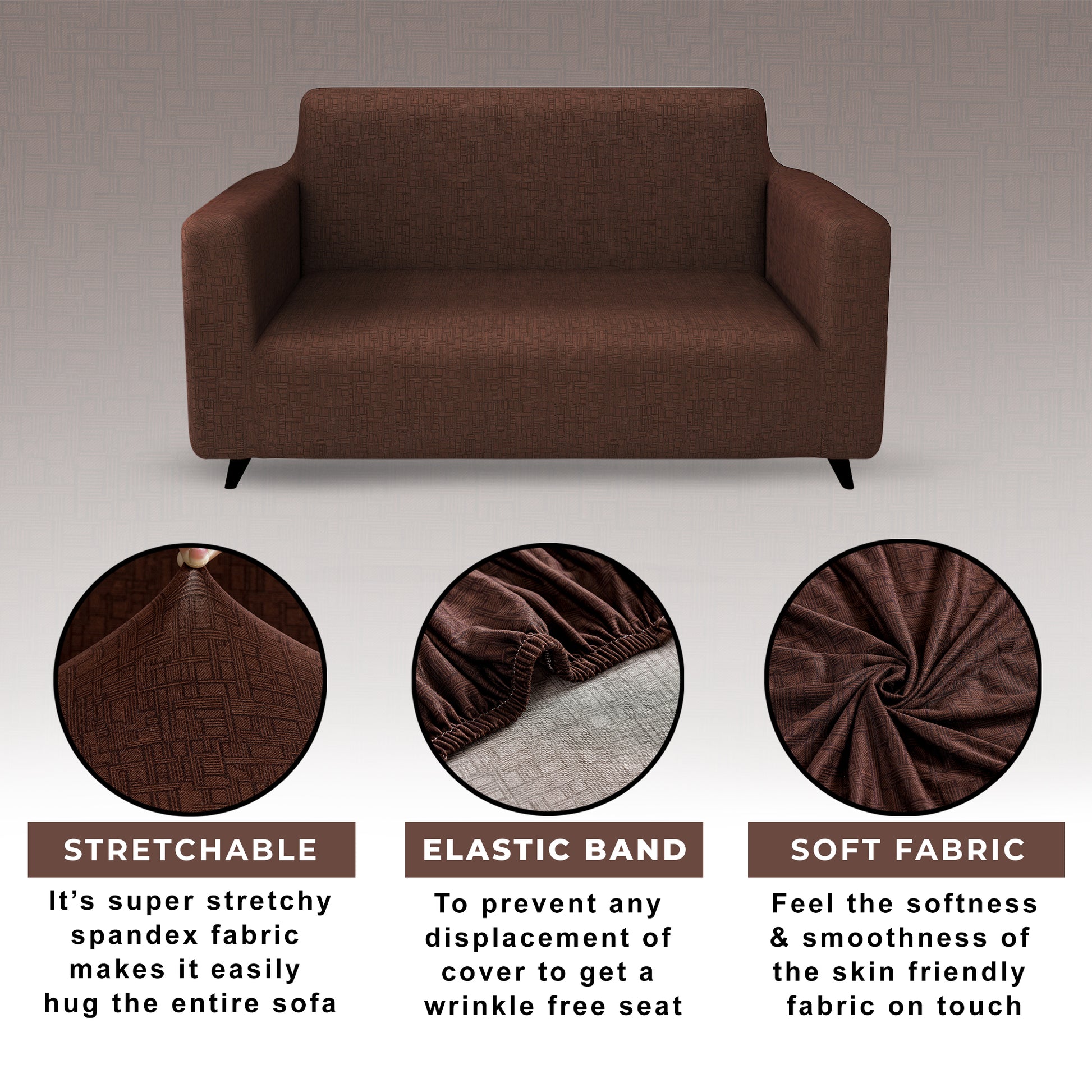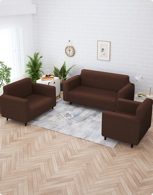 Sofa Cover Combo – 1 Pc 1 Seater, 1 Pc 2 Seater, and 1 Pc 3 Seater Elastic Stretchable in Dark Brown Criss Cross Pattern by Story@Home