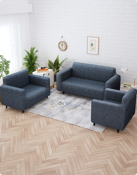 Sofa Cover Combo – 1 Pc 1 Seater, 1 Pc 2 Seater, and 1 Pc 3 Seater Elastic Stretchable in Grey Criss Cross Pattern by Story@Home